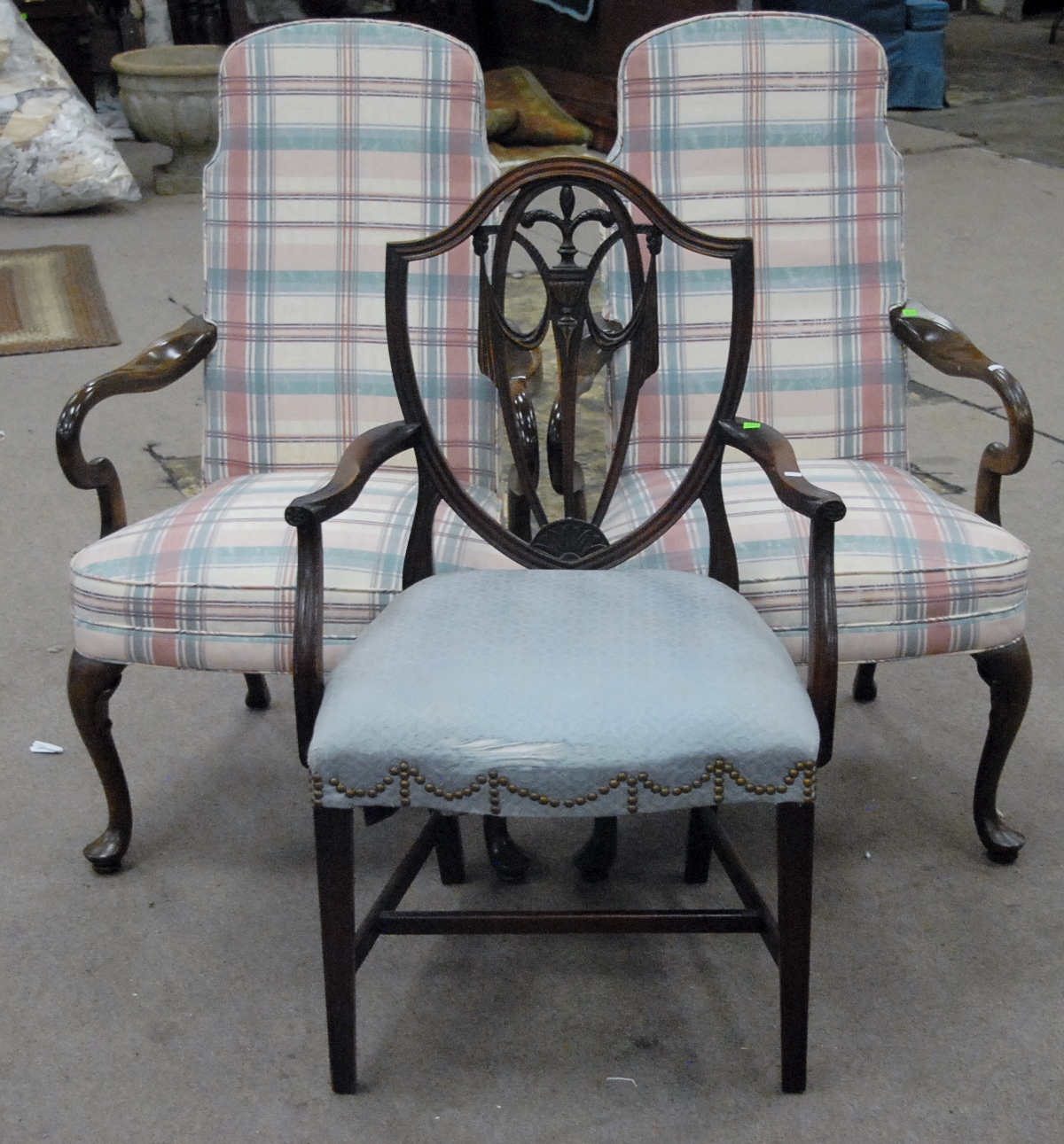 Pair of small mahogany Chippendale style mirrors and Federal two part mirror.