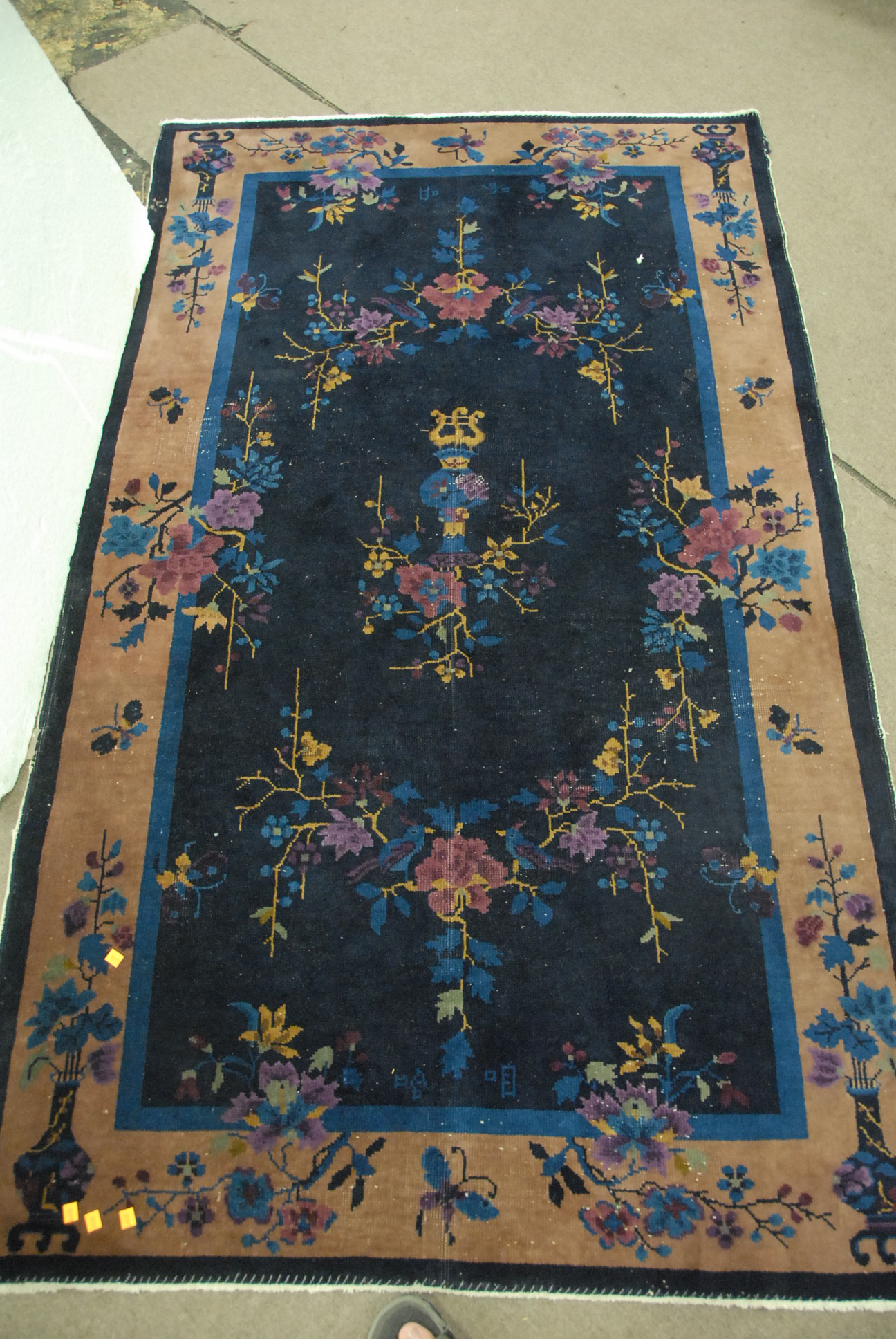 Two piece lot to include Oriental rug, 5’7 x 7’1 and Oriental throw rug 2’1 x 3′.