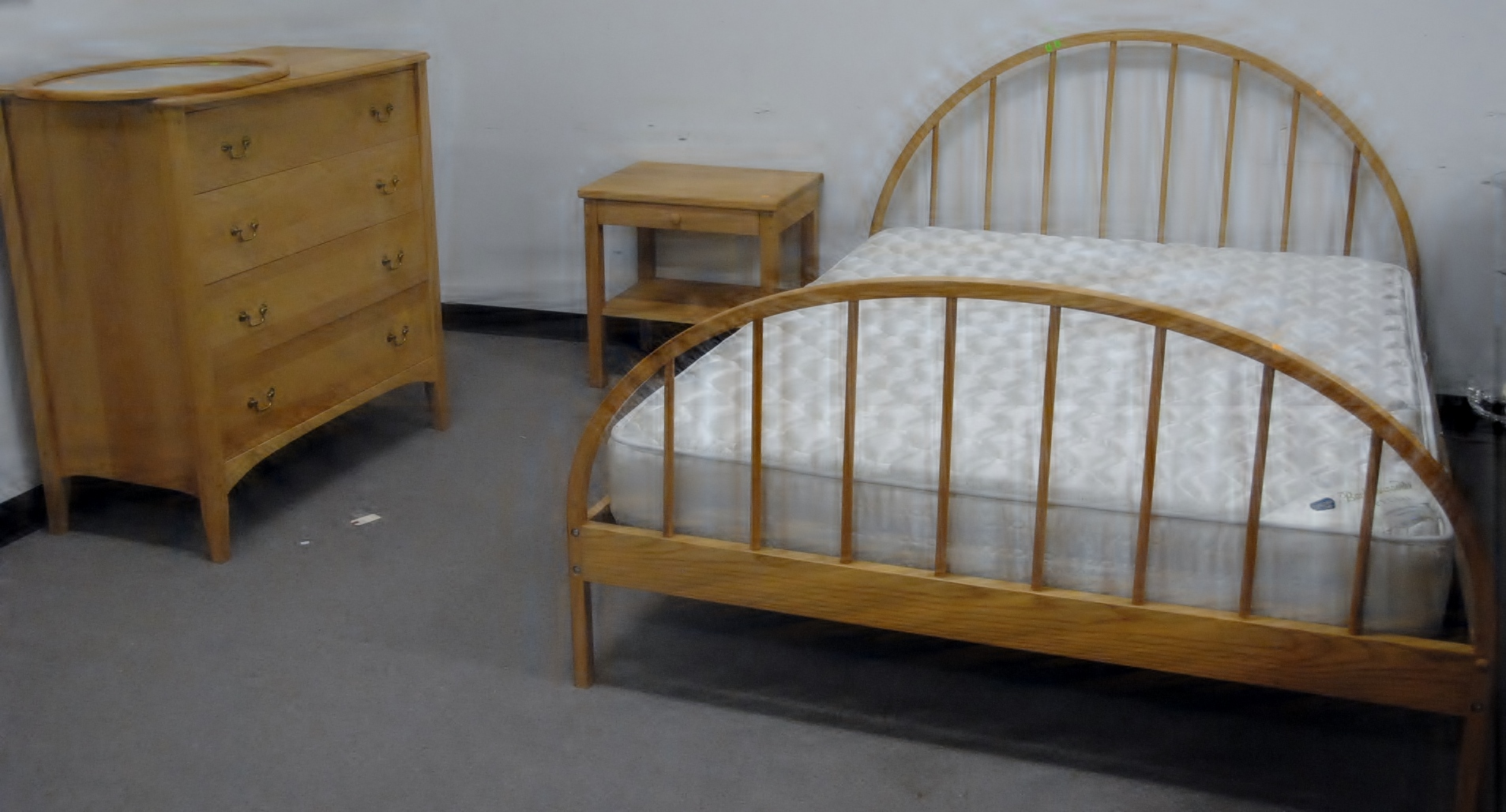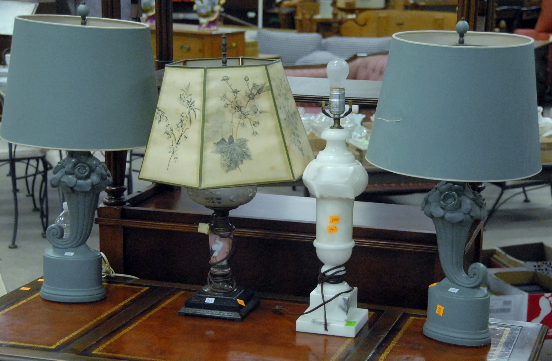 On top and below table to include books, miscellaneous glass and china, marble top stand, suitcase, spool bed, outdoor chair, bench, two air purifiers.