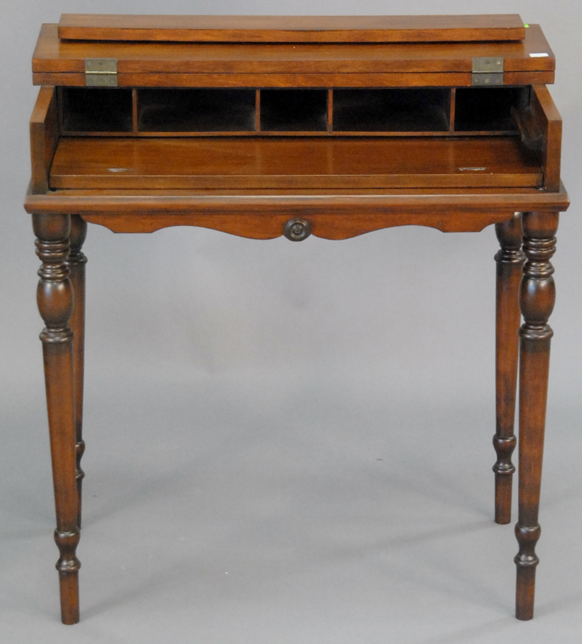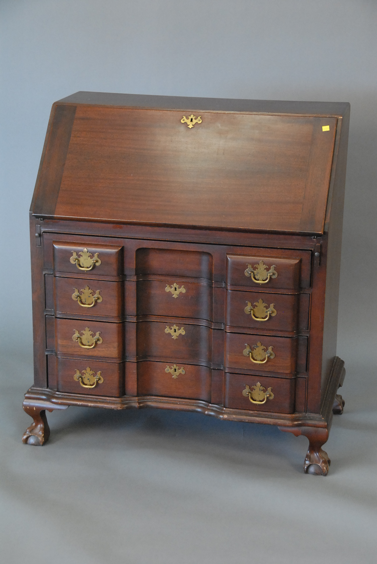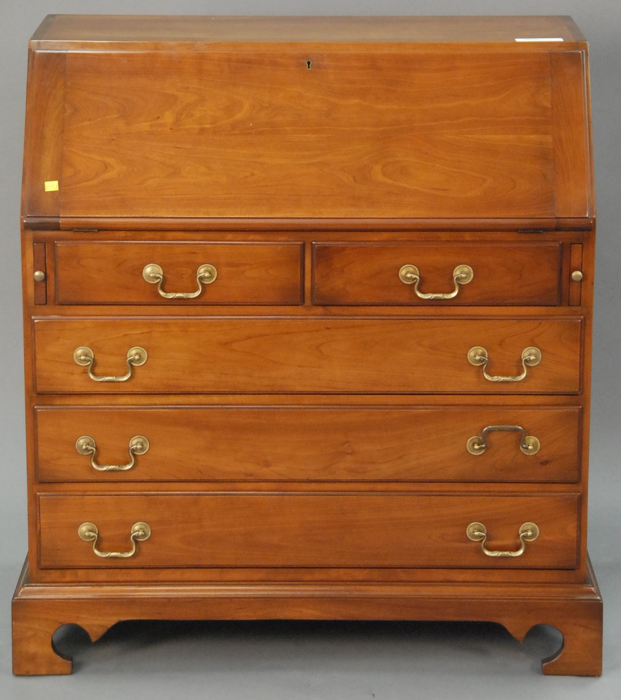 Stickley cherry slant front desk signed L & J G Stickley having label: Leopold Stickley Original 1955 and stamped Jul 23 1955, ht. 40in. wd. 36in. dp. 19 1/2in.