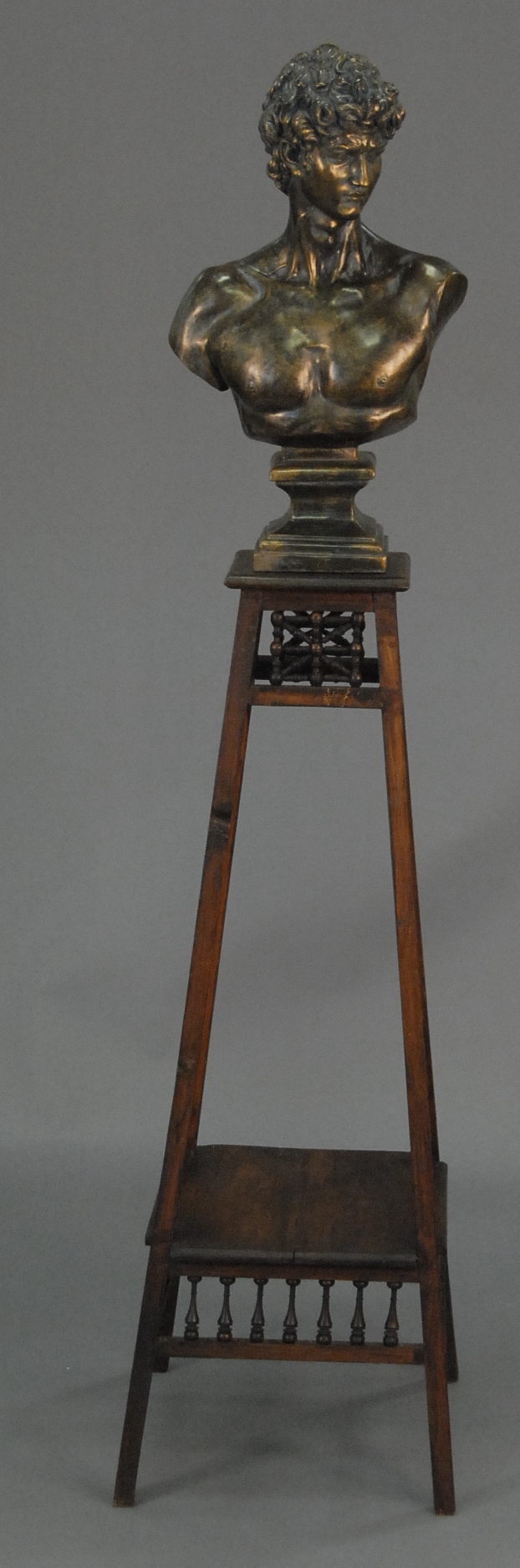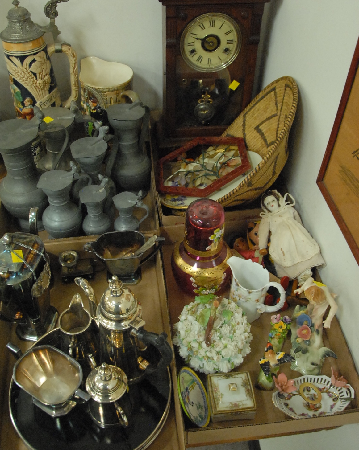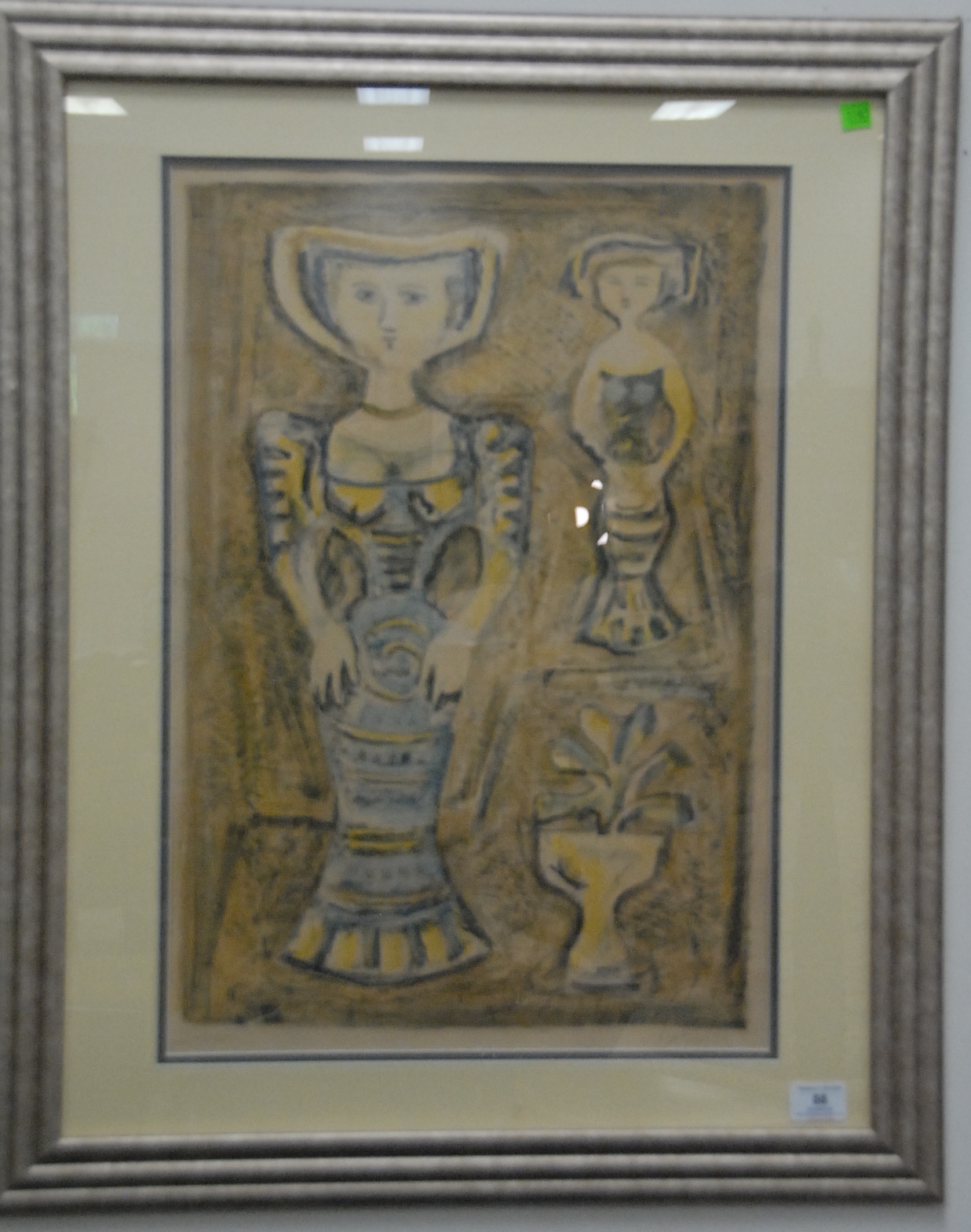 Four piece lot to include Bernard Block art nouveau Nymph vase ht. 12in., Amphora handled vase ht. 11 1/2in., and pair of Van Briggle candle holders ht. 5in.