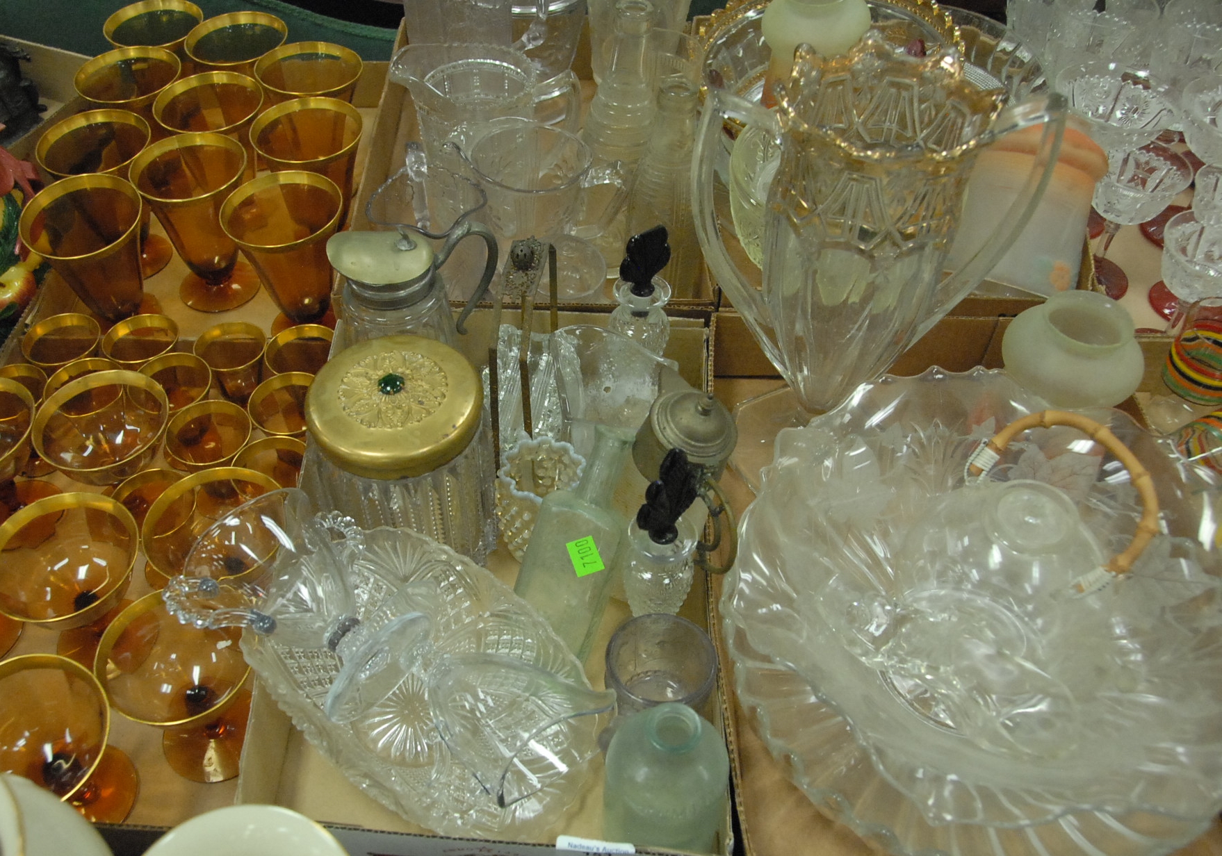 Six box lots to include set of gold rimmed stems, bowl, serving pieces, vases, etc.