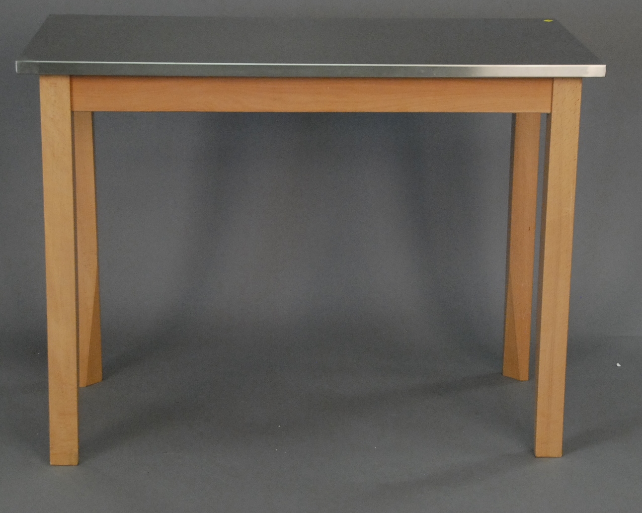Contemporary work table fitted with stainless steel top, ht. 36in. top: 24 x 48.