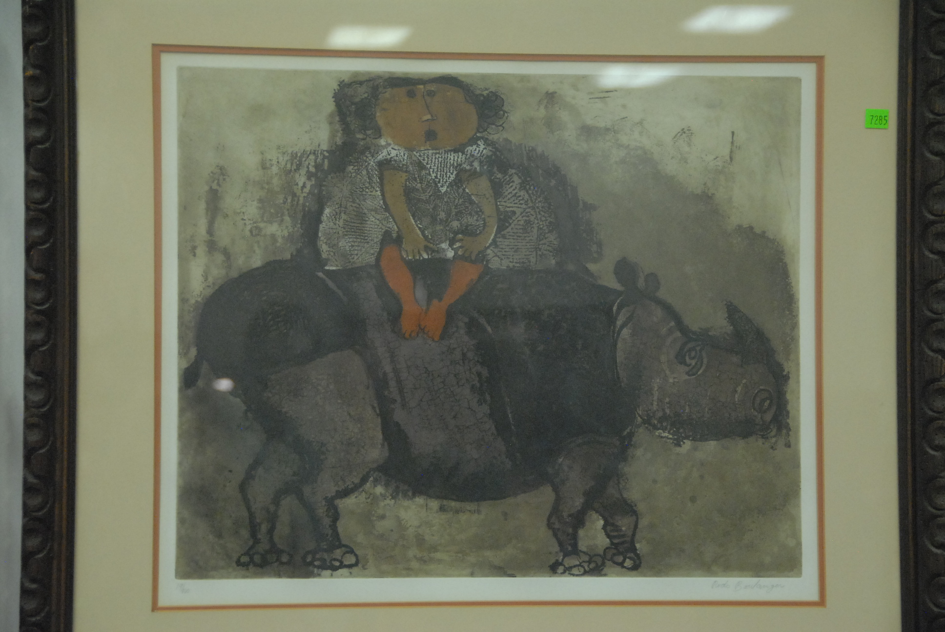 Graciela Rodo Boulanger 1935 girl on rhino numbered lithograph, signed lower right Rodo Boulanger, numbered lower left 19/100, 17 x 21.