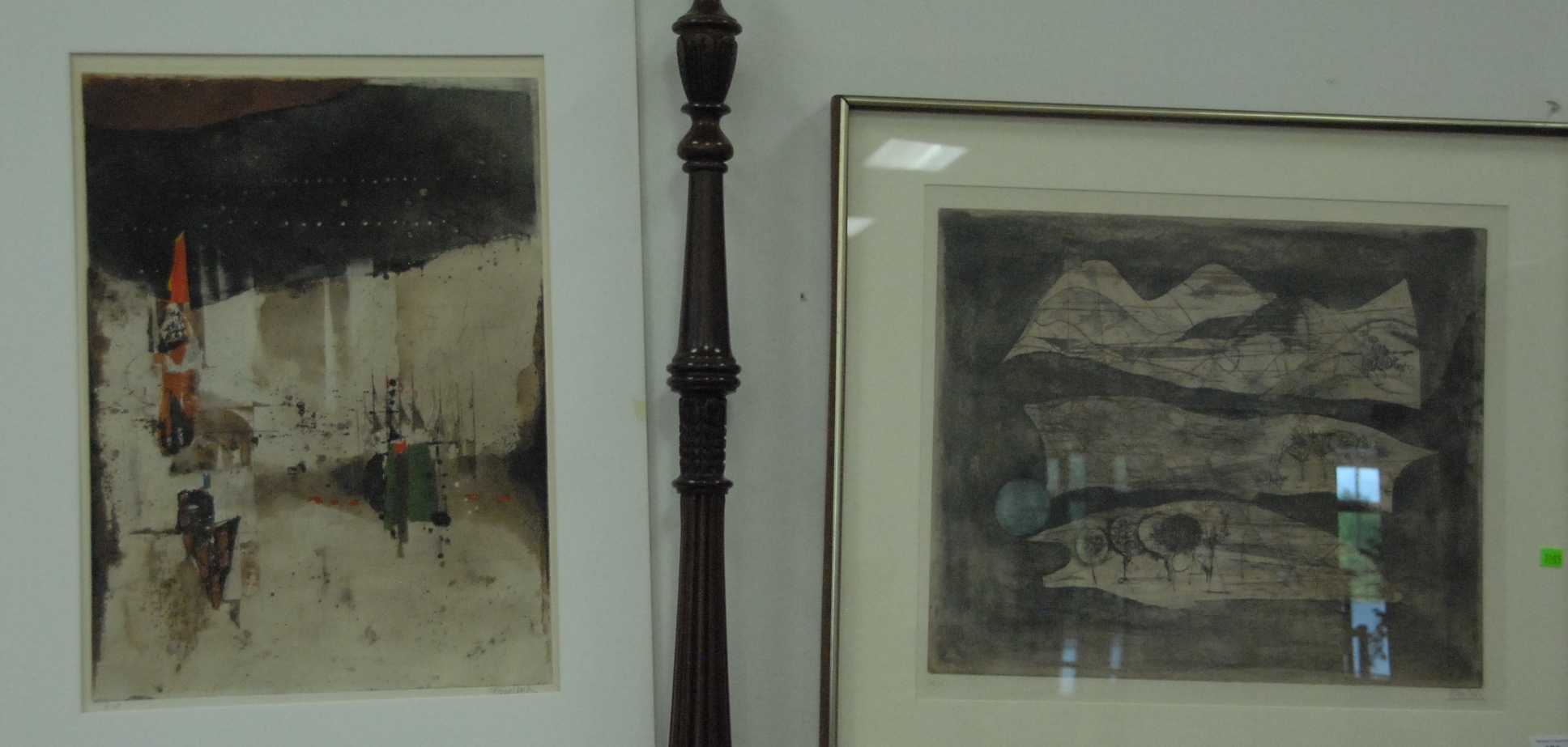 Two Johnny Friedlaender 1912-1992 aquatint etchings, both signed lower right Friedlaender, 16 1/2 x 20 1/2 and 21 1/2 x 15 1/2.