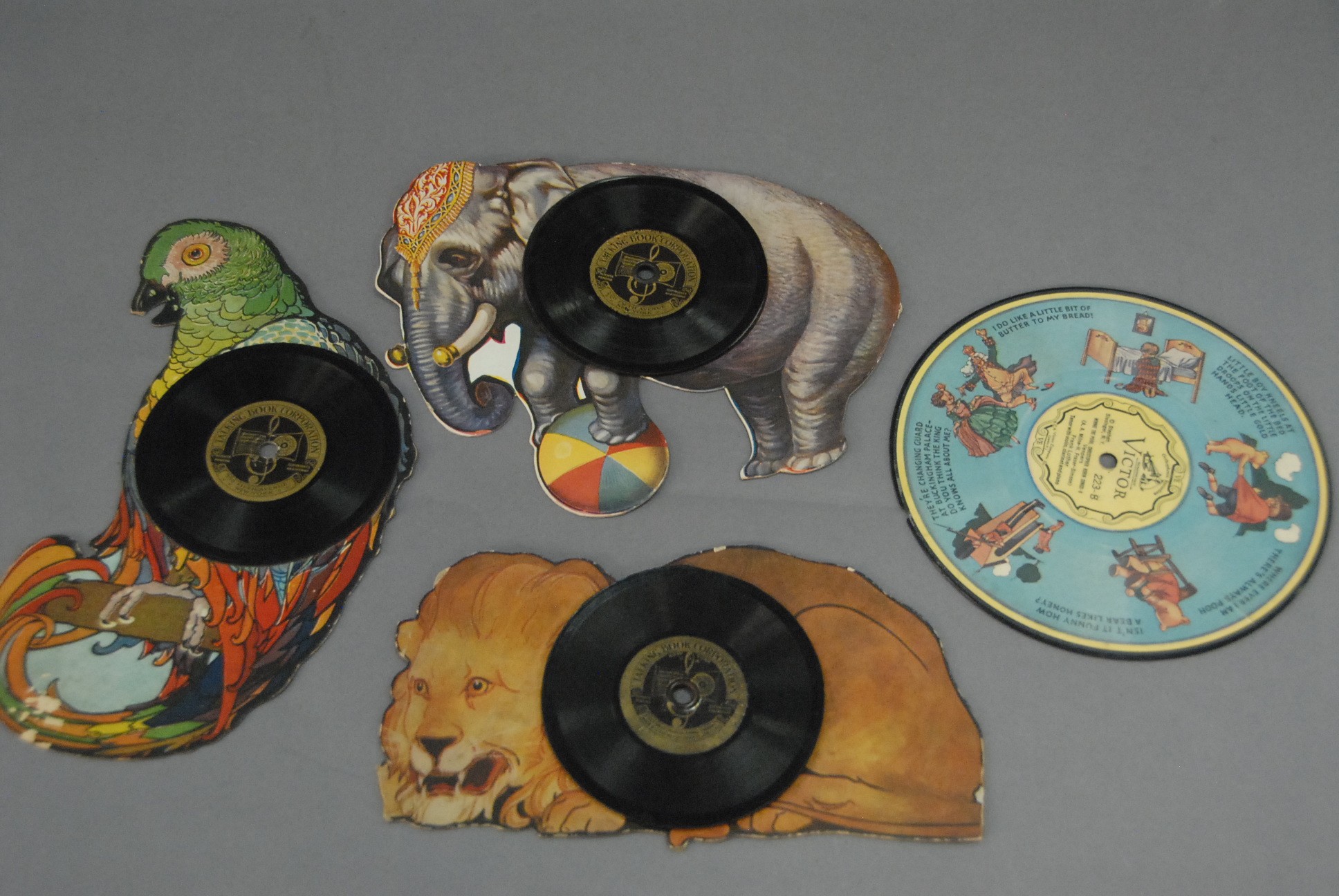 Four piece lot to include three talking book records and one Winnie the Pooh record.