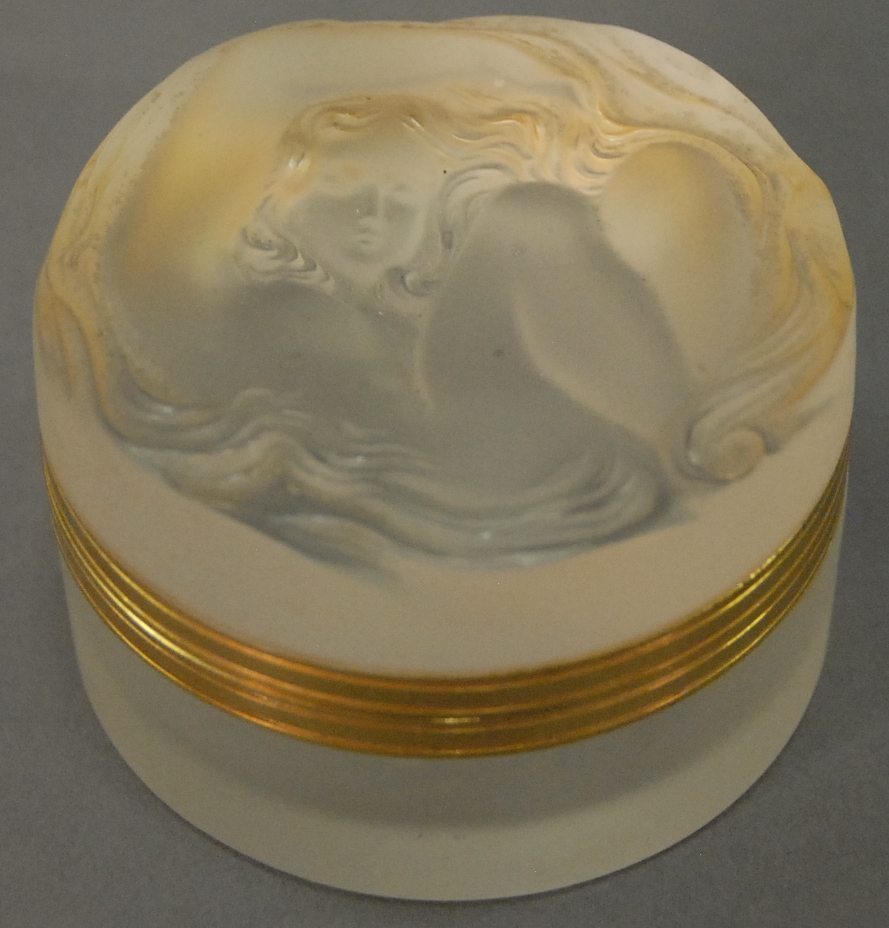 French crystal Lalique Daphne trinket box signed on bottom Lalique France, ht. 2in. dia. 3in.