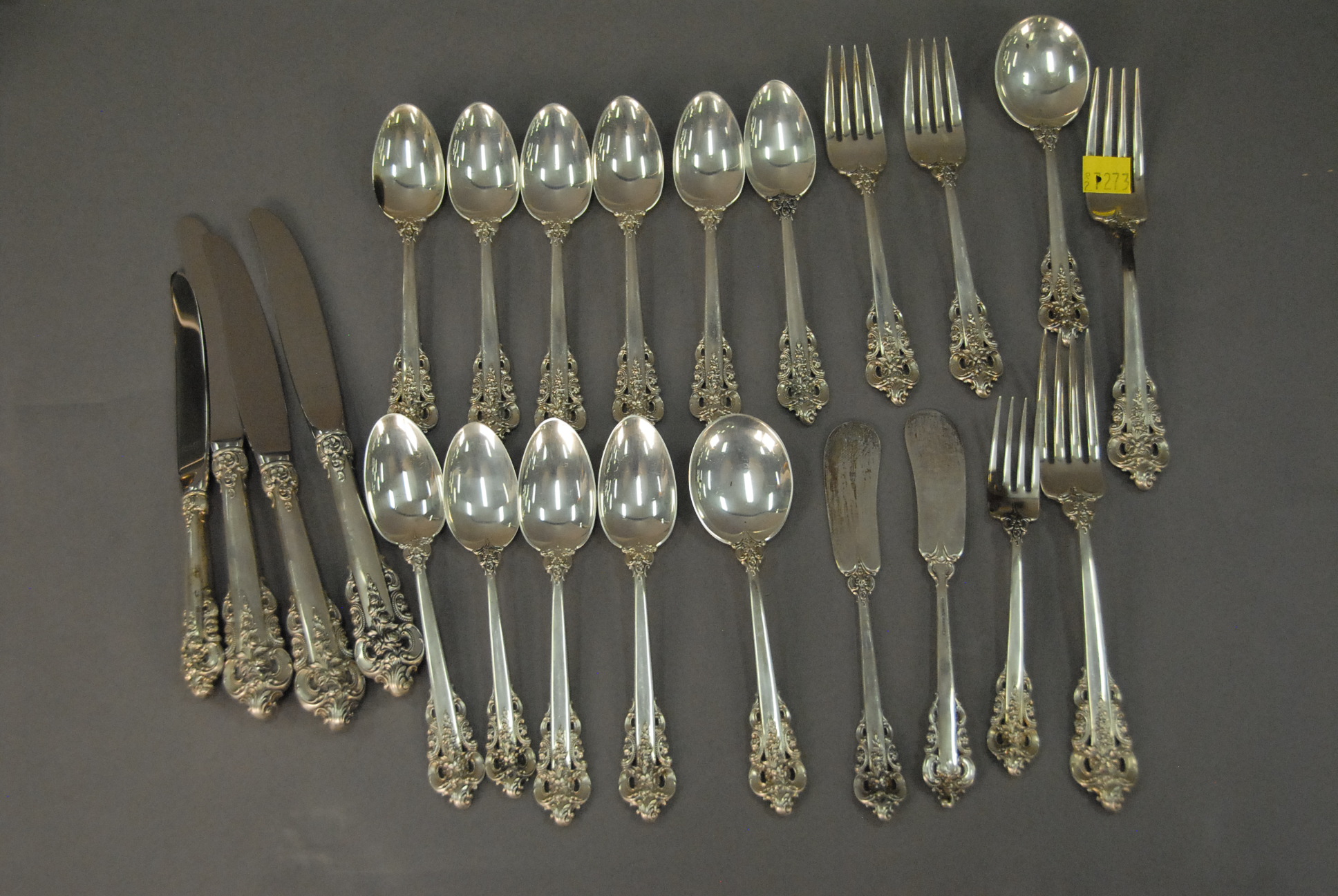 Partial sterling flatware set of Wallace, 24 t oz. plus four knife handles.
