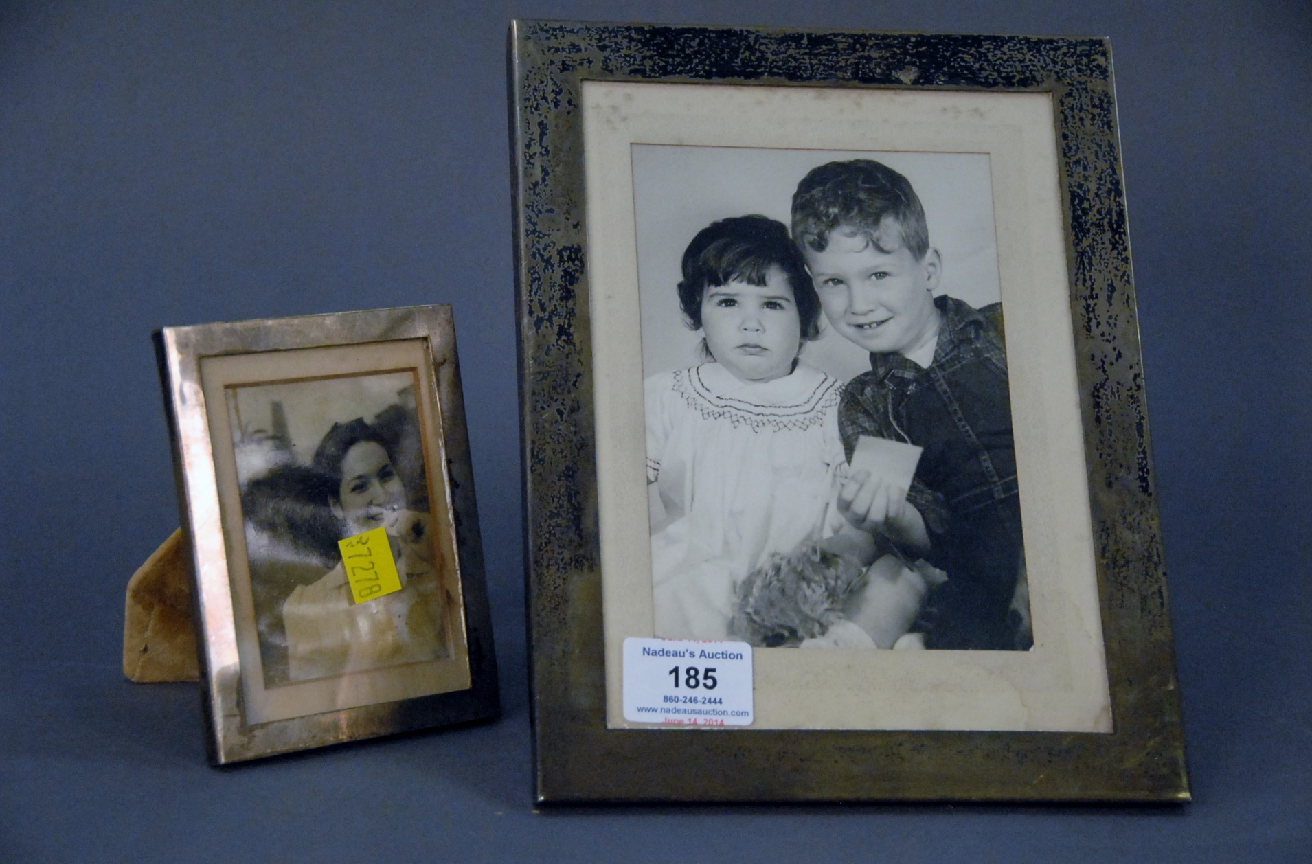 Two sterling picture frames, large one with wood back marked Tiffany & Co. Makers sterling silver 17695.