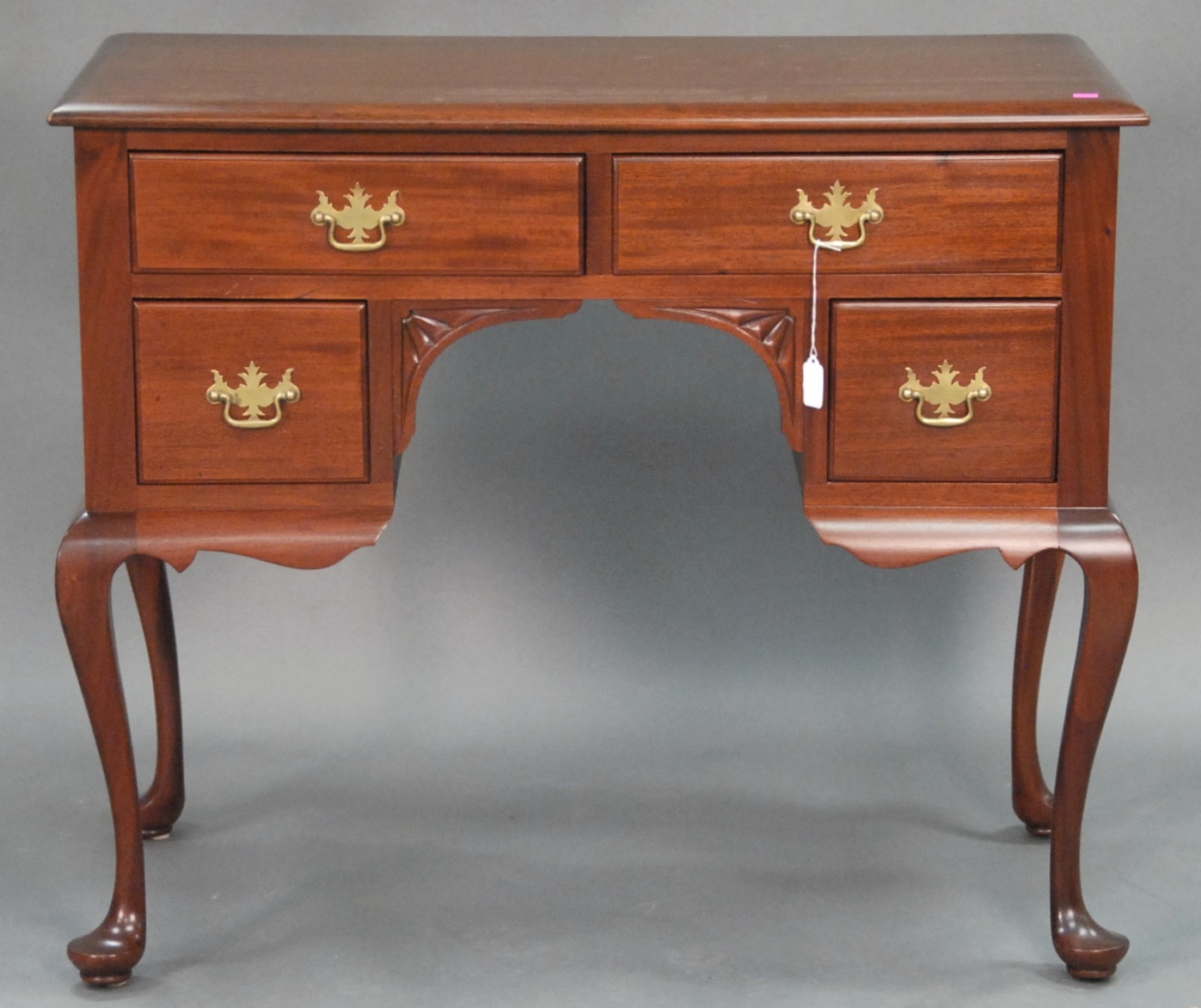 Mayflower Furniture Co. mahogany vanity and mirror along with French style chair. vanity: ht. 30in. dp. 20in.