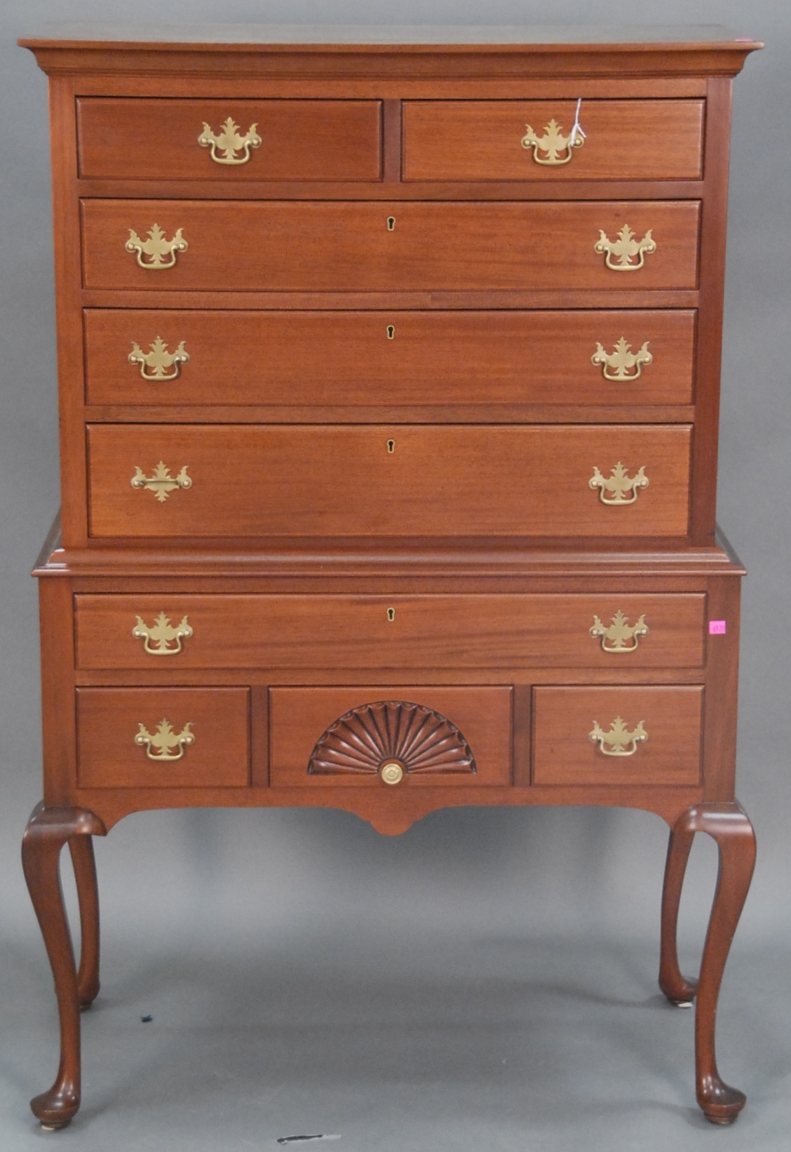 Mayflower Furniture Co. mahogany flat top highboy in two parts. ht. 57in. wd. 36in.