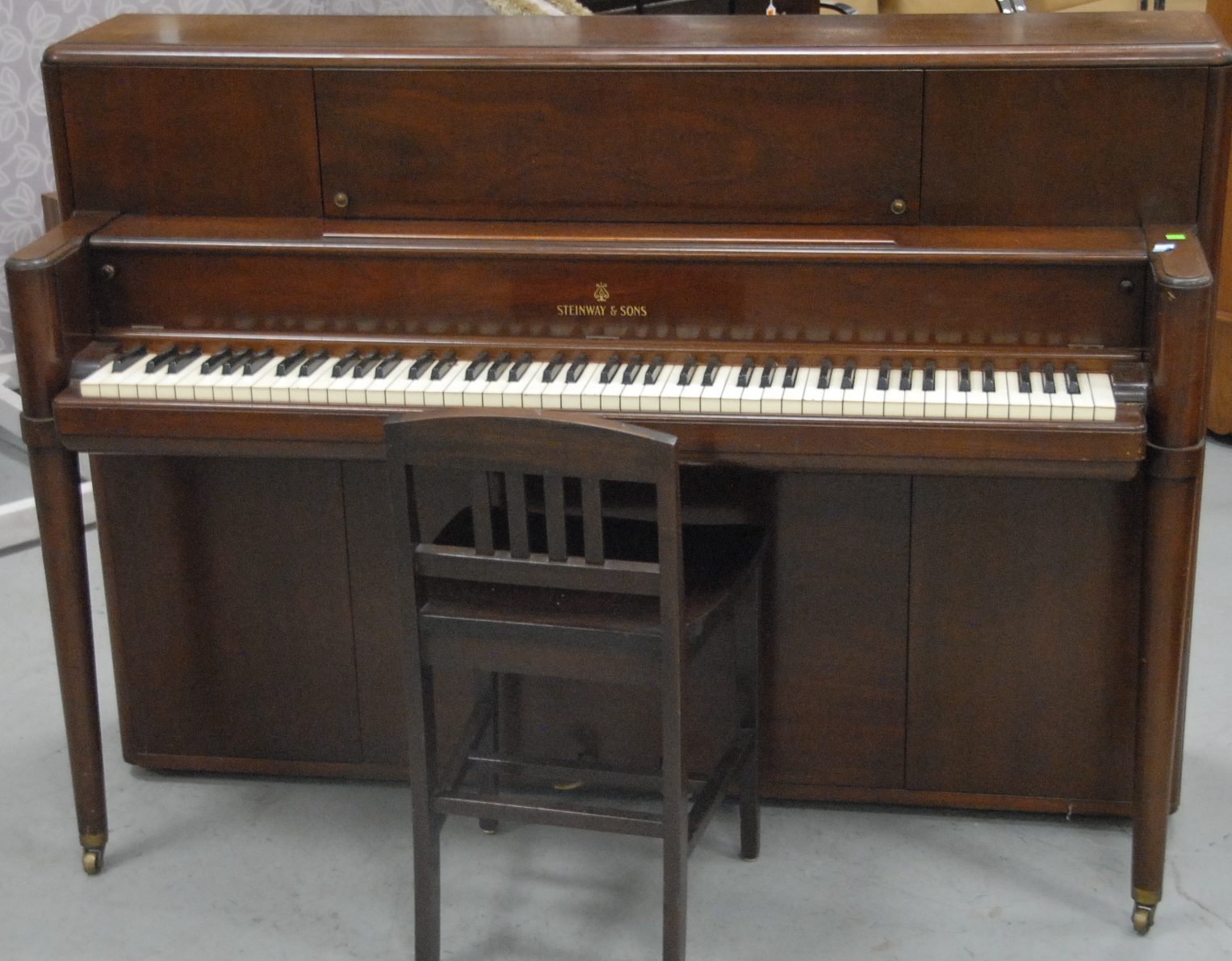 Steinway & Sons upright mahogany piano, accelerated action with a diaphragmatic sound board, model #U4669