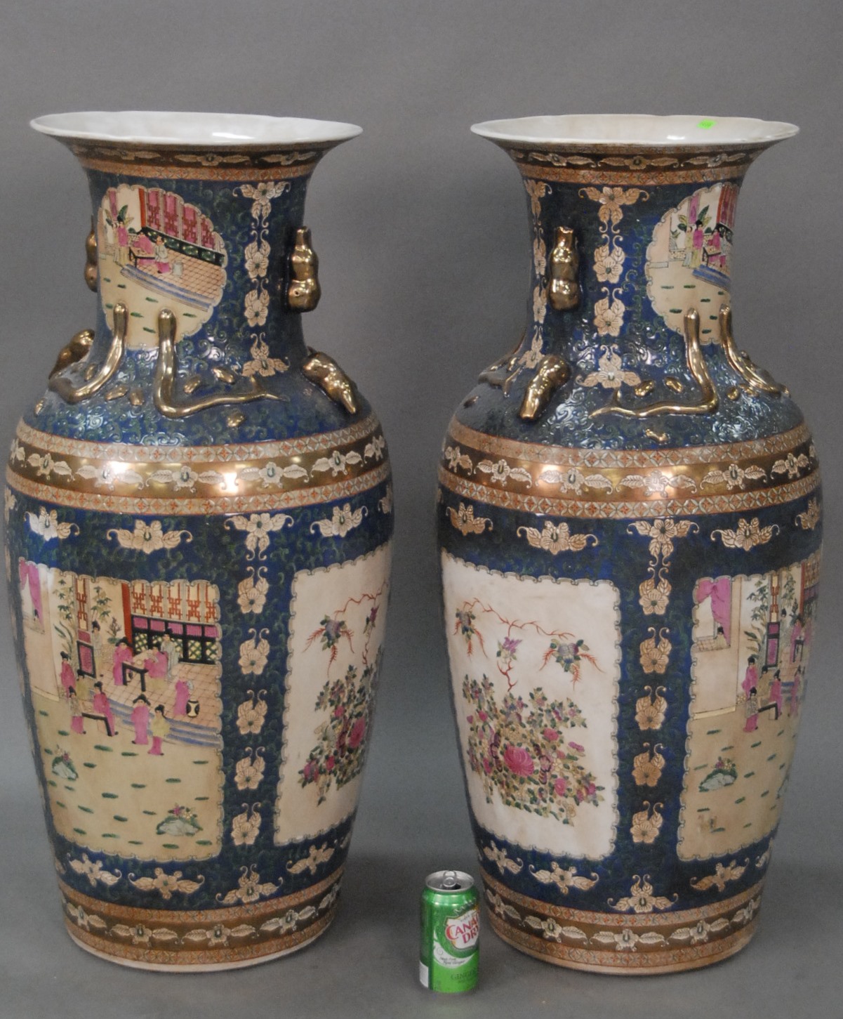 Pair of decorative Oriental style palace vases, ht. 36 in.
