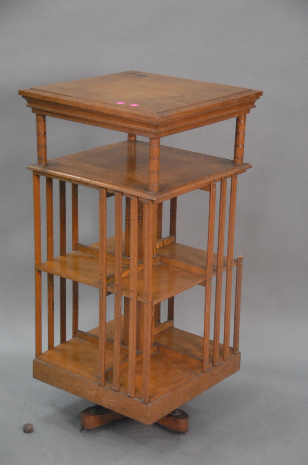 Donner oak revolving bookcase signed Donner Canton Ohio.