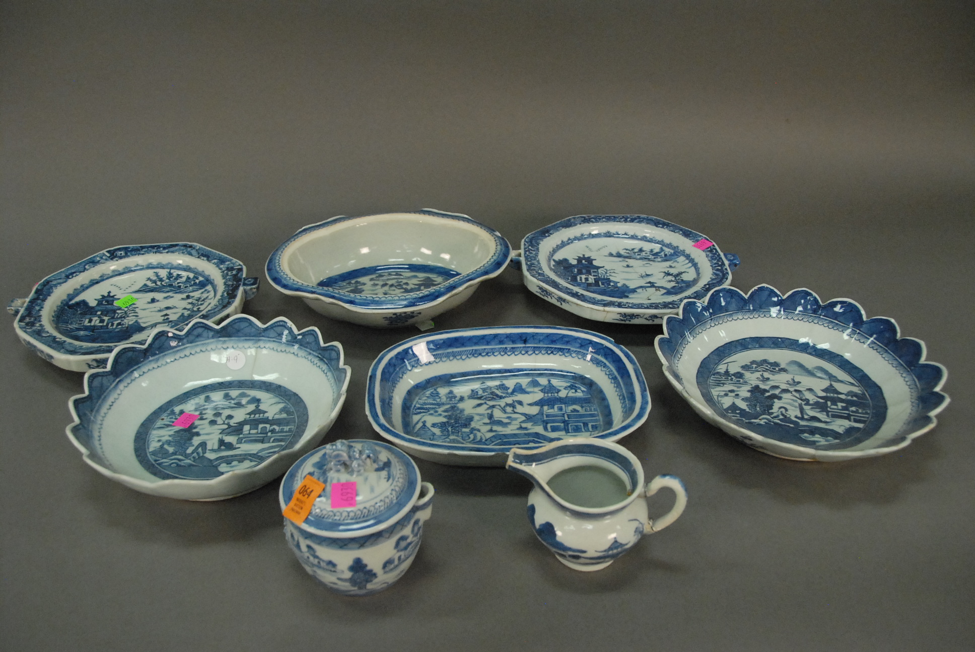 Six piece Canton lot to include two warming plates, two scalloped bowls, and two open dishes lot damage.