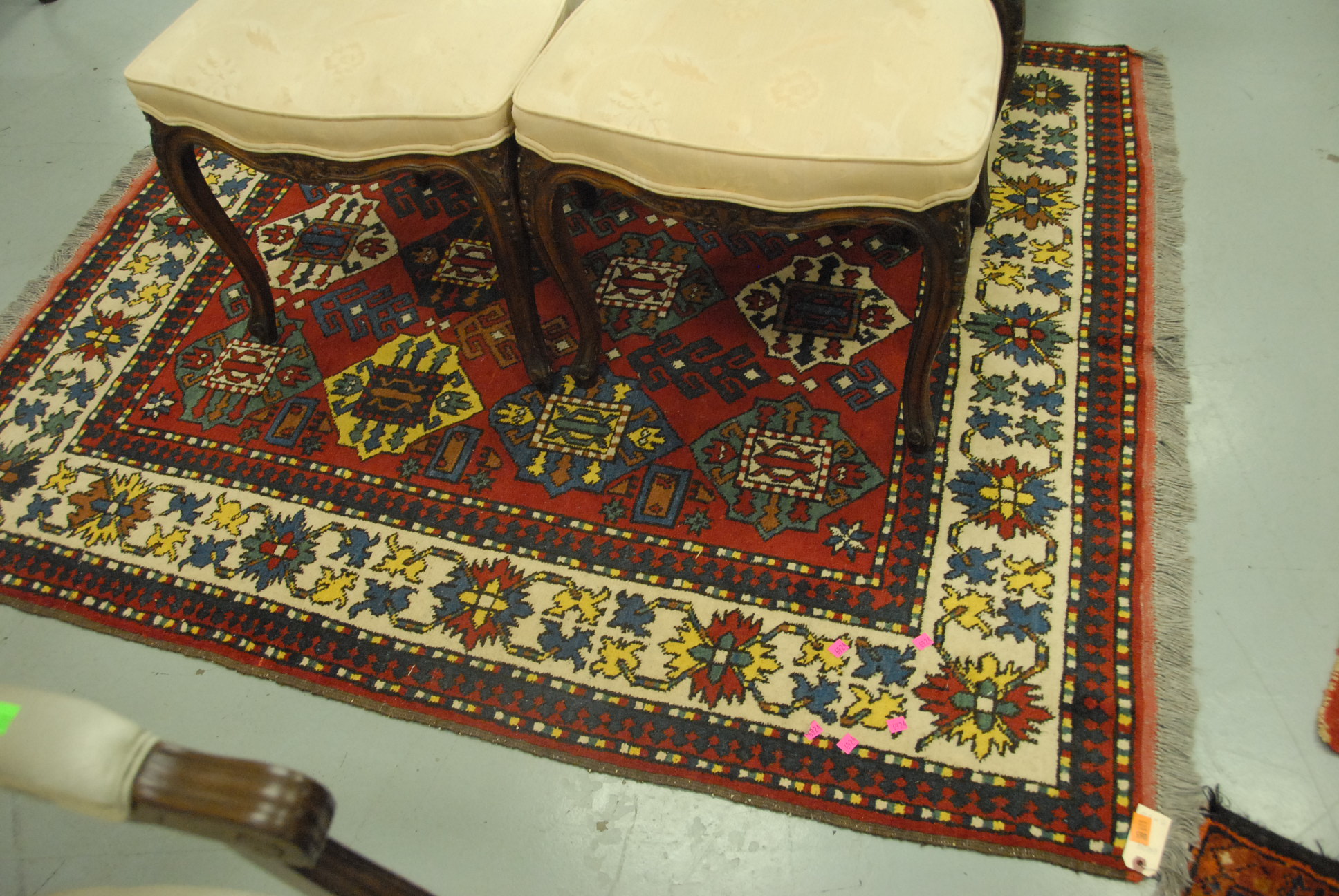 Two Caucasian style Oriental rugs, 3’8 x 5’8 and 2’8 x 3′.
