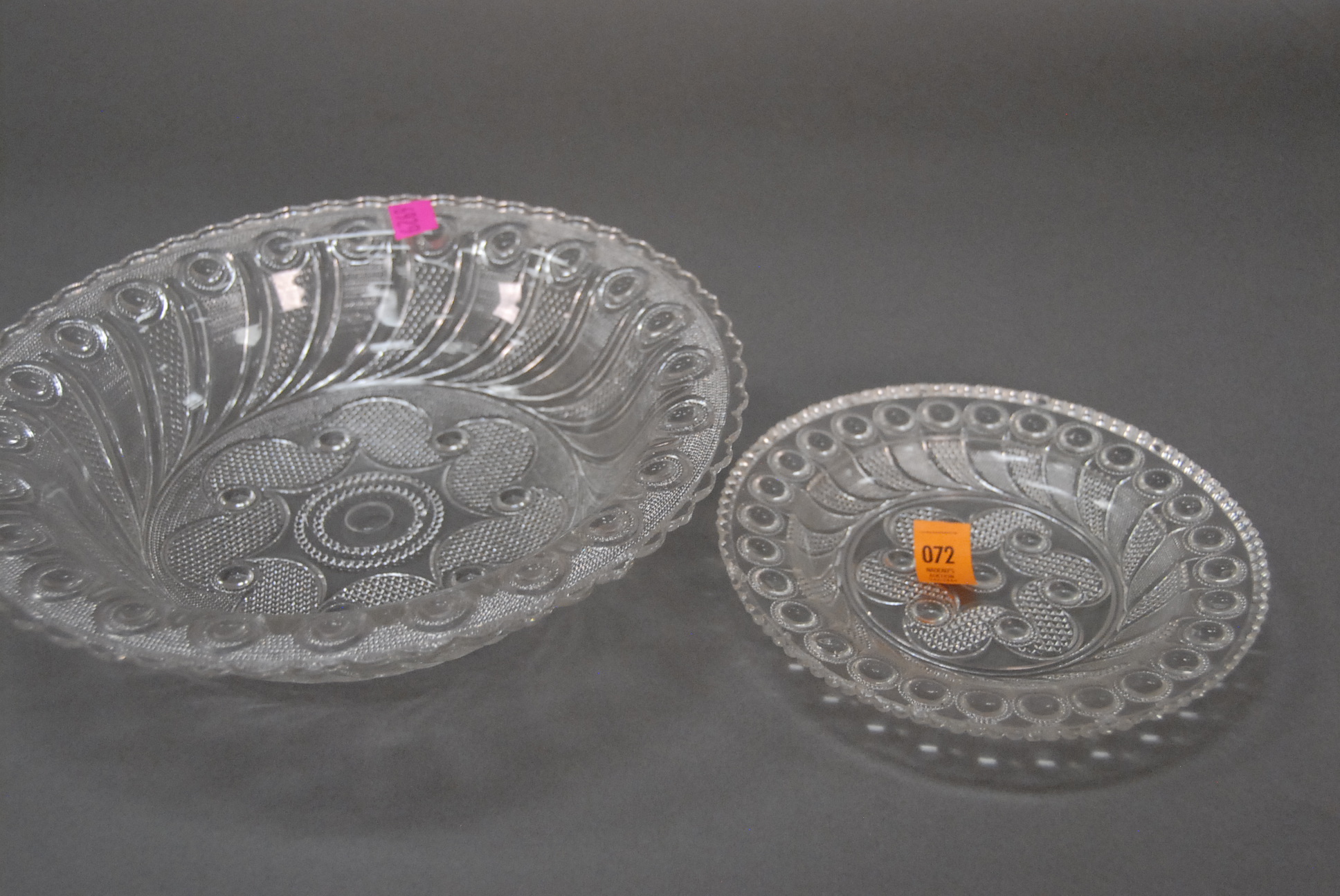 Two piece lot of sandwich glass to include large bowl and small plate plate with chips.