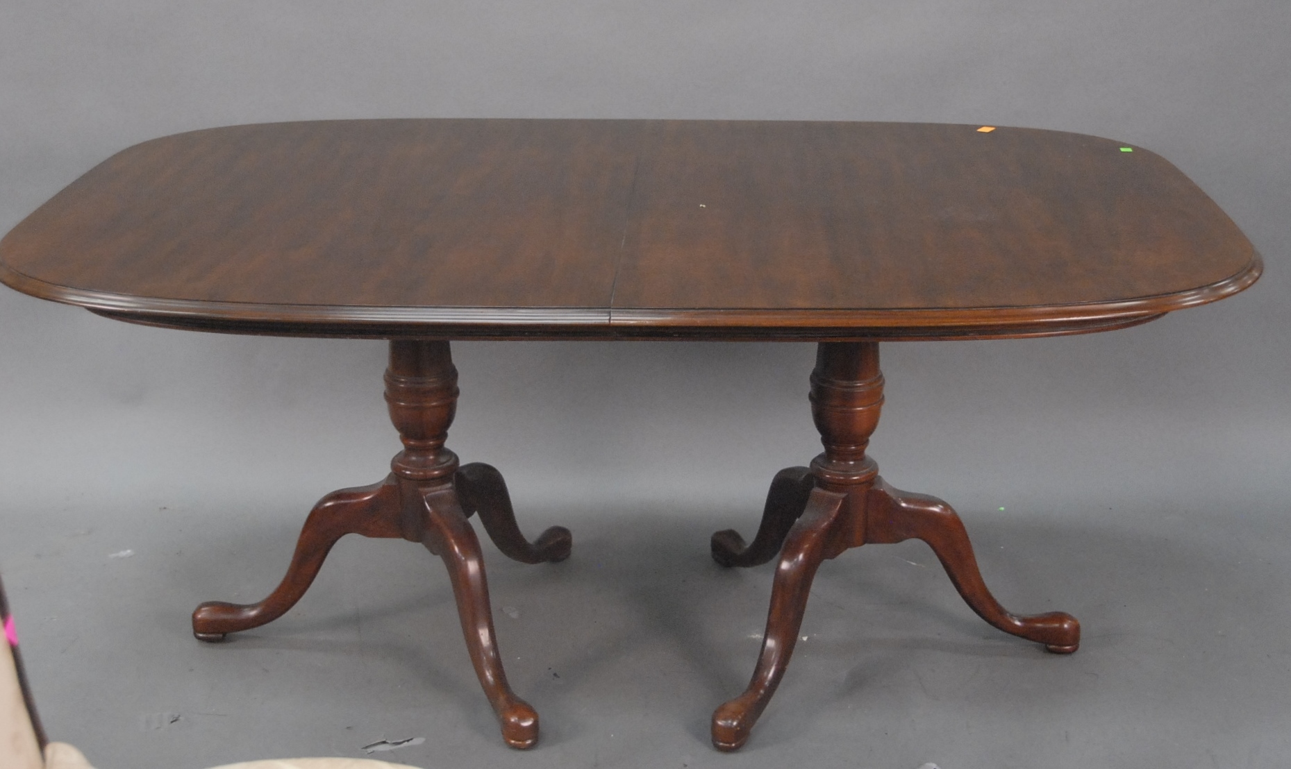 Drexel Heritage cherry dining table with two leaves and six Chippendale style chairs.