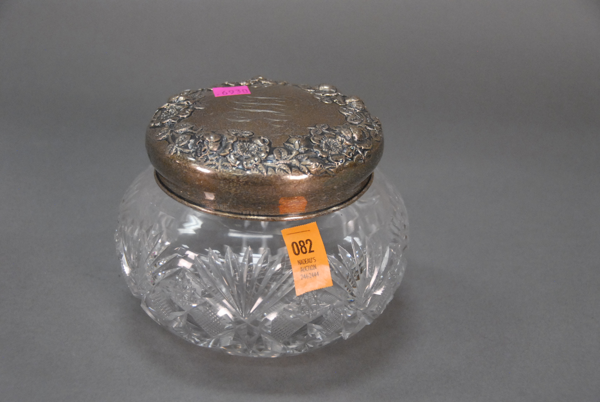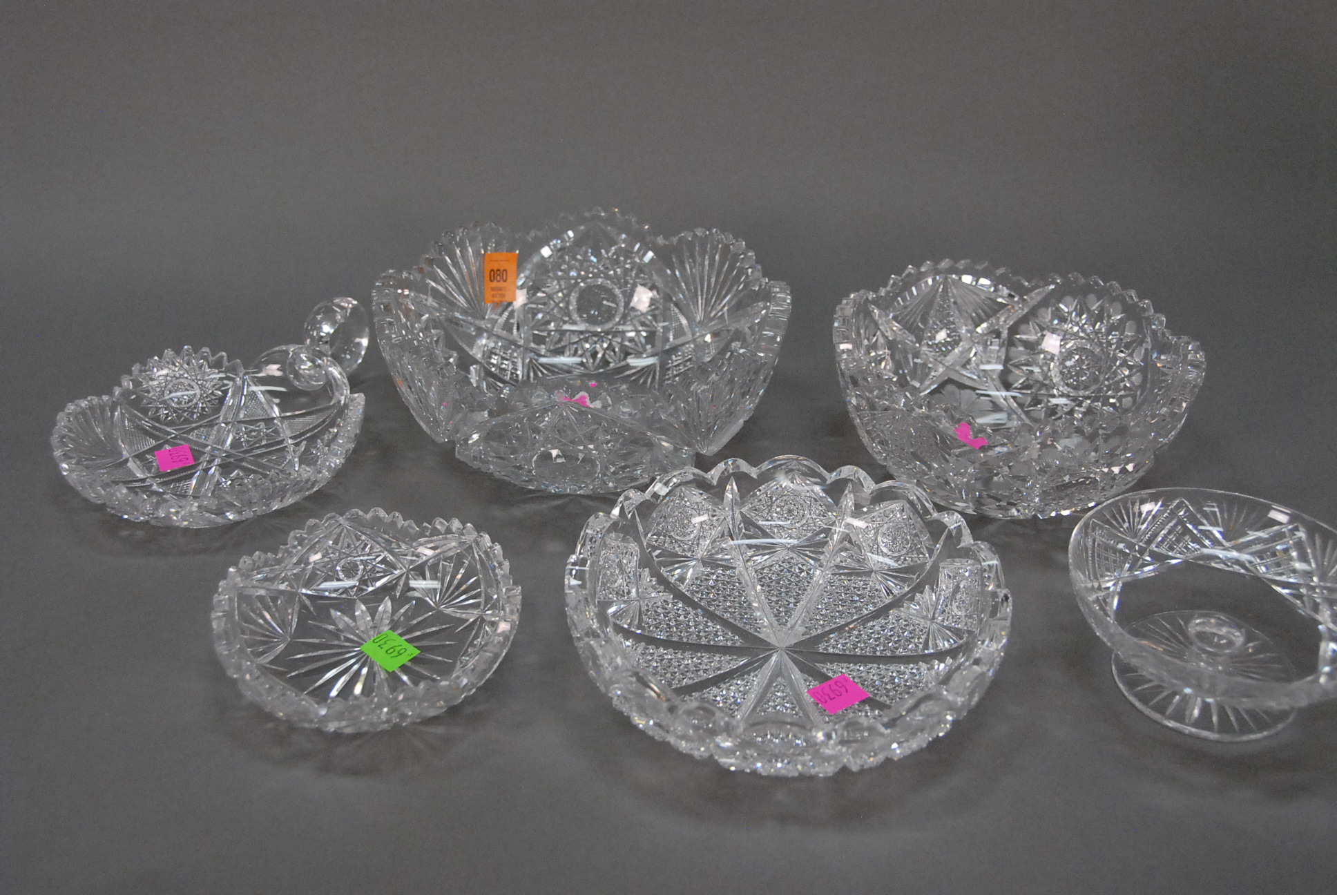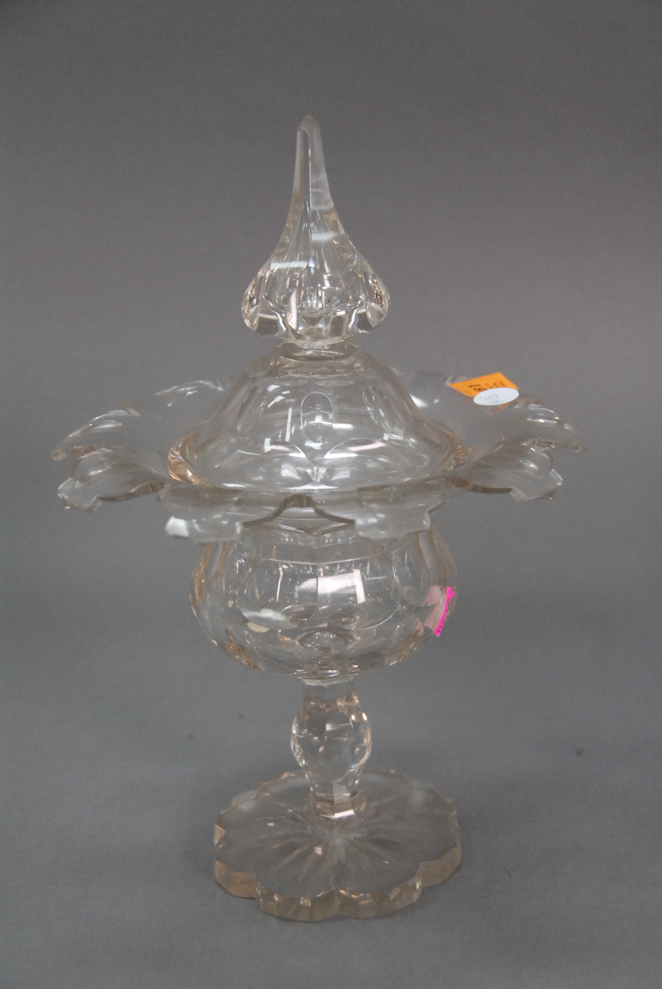 Cut crystal covered sweet meat dish two small flakes, ht. 13in.
