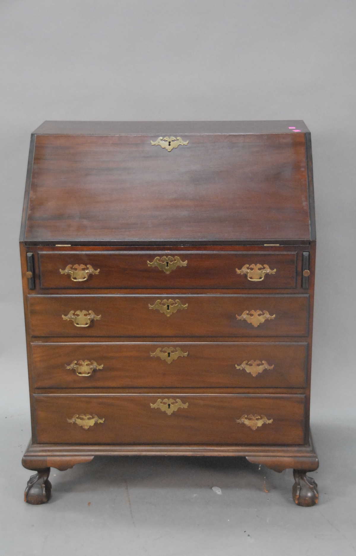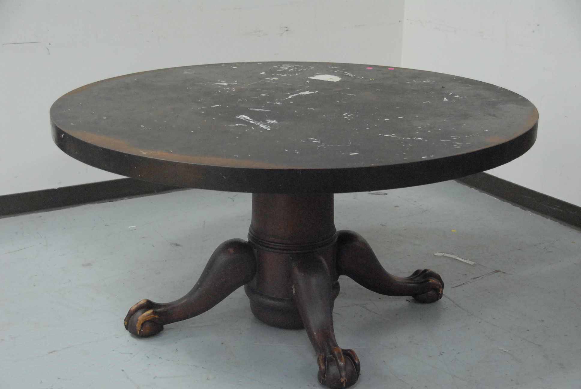 Round mahogany pedestal table with ball and claw feet needs refinishing, dia. 60 in.