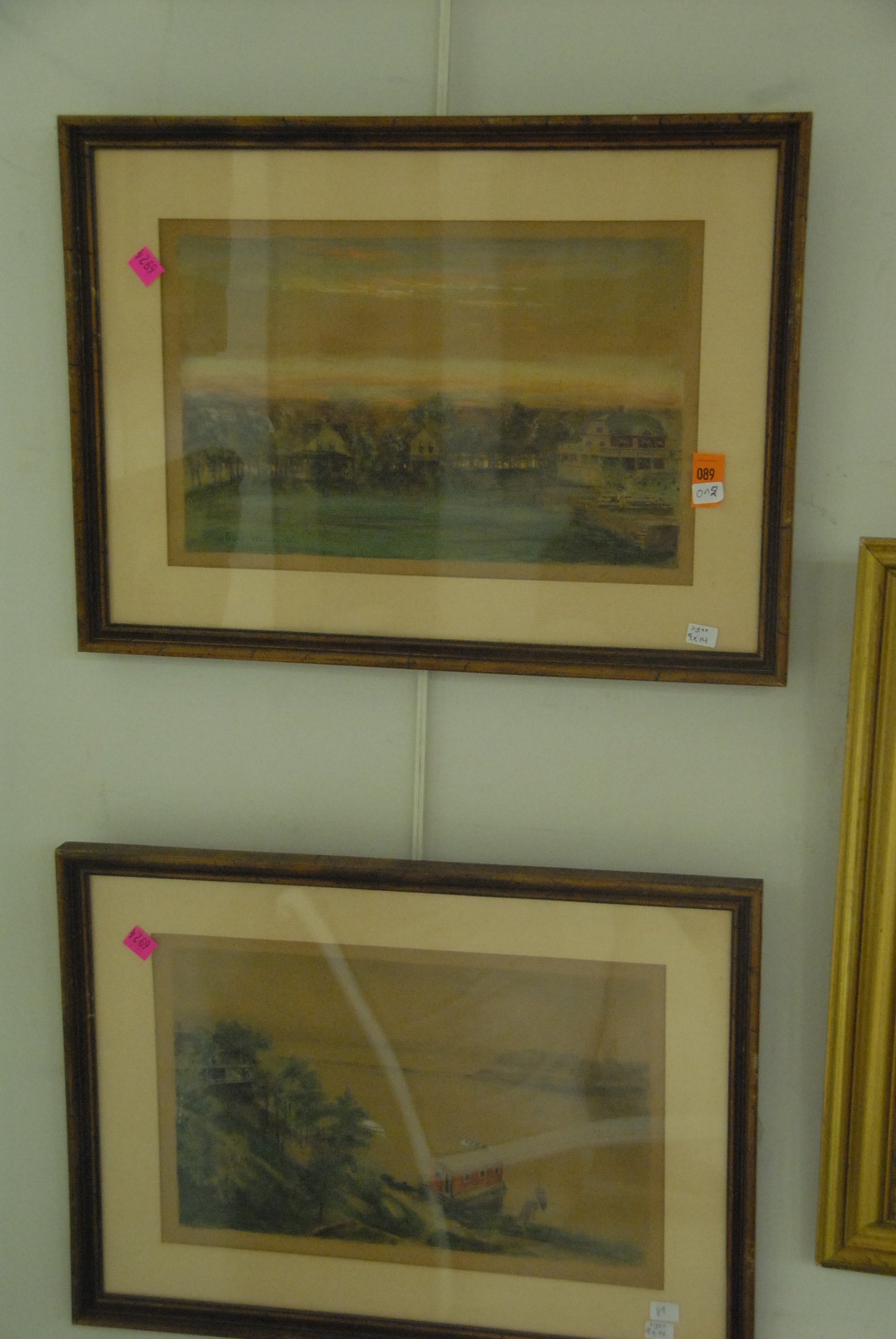 John Franklin Waldo 1835-1920 two watercolors Rainy Day, Thames River Conn and Evening Quaker Hill, Conn signed lower left J. Frank Waldo 1910, each 9 x 14