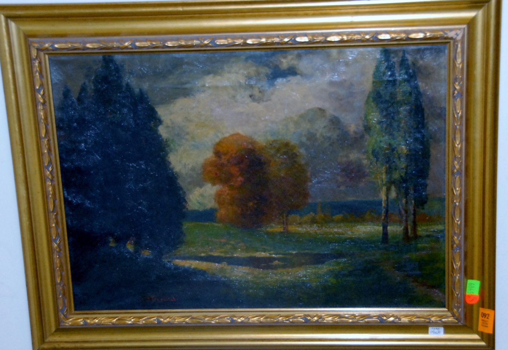 Oil on canvas 19th century landscape signed lower left Durand, 14 x 20.