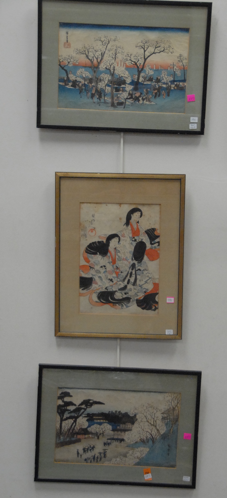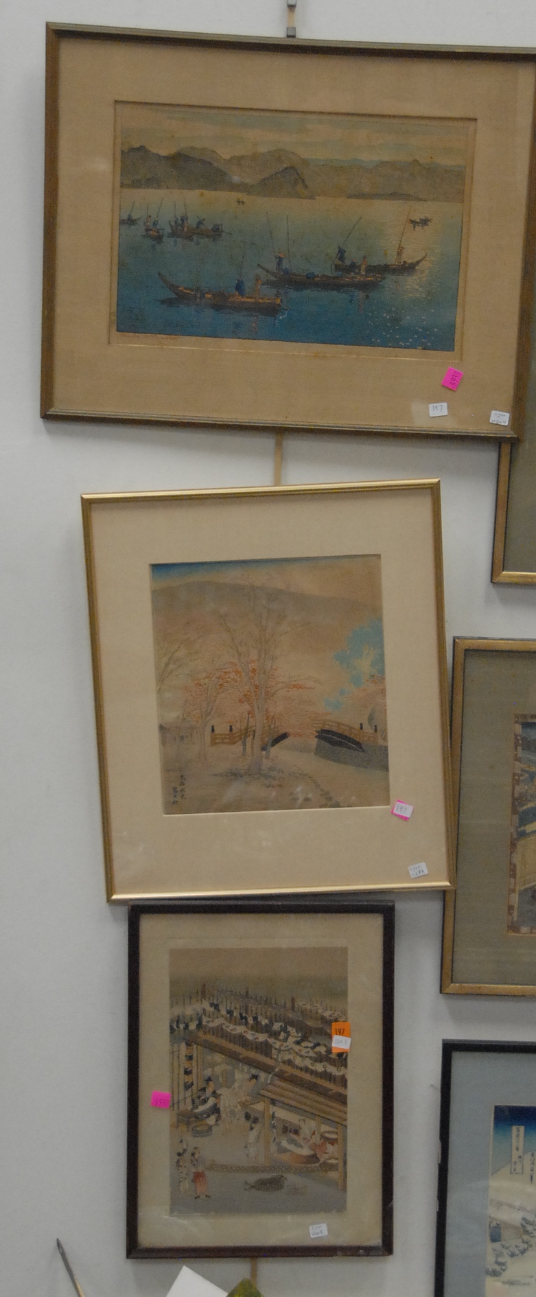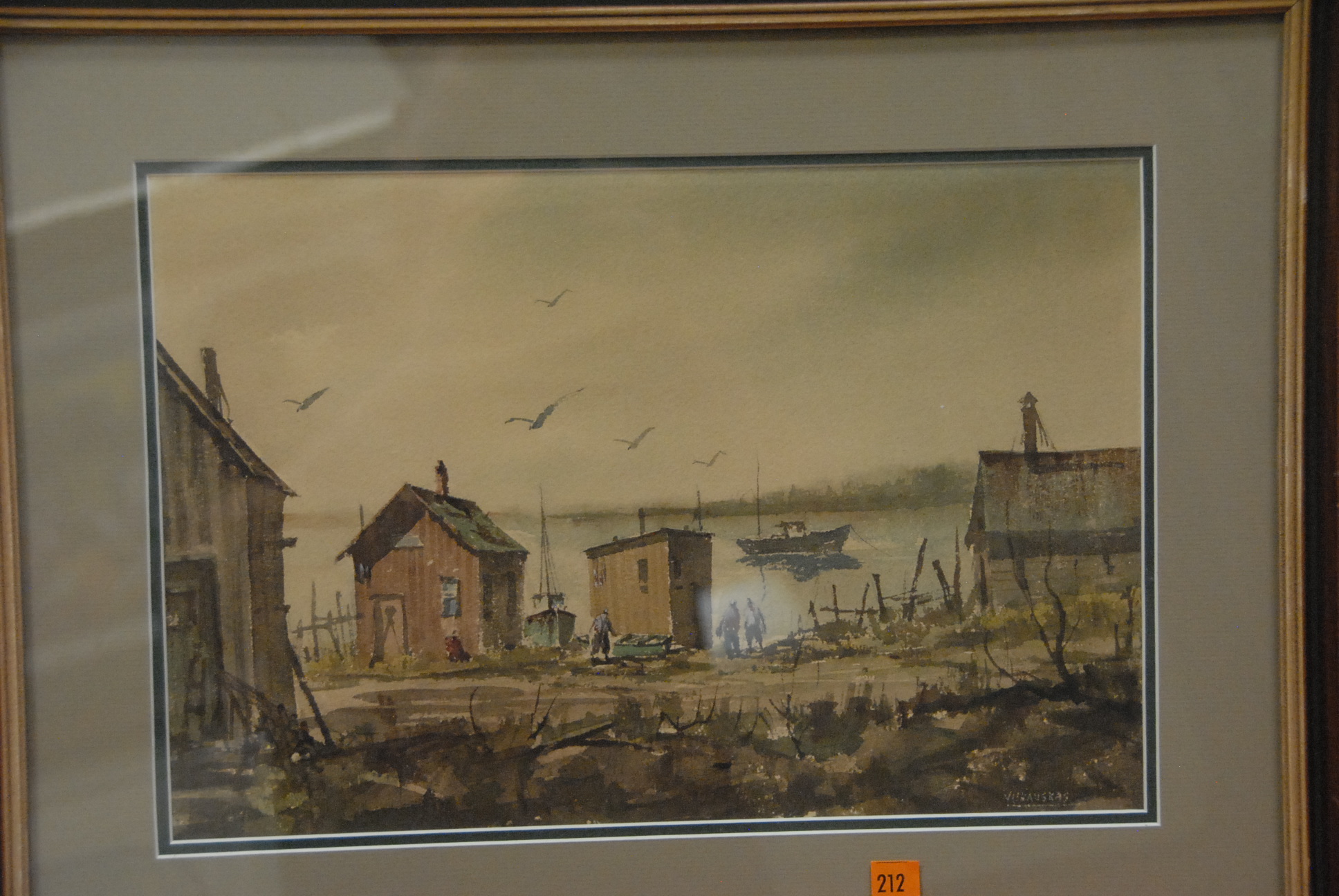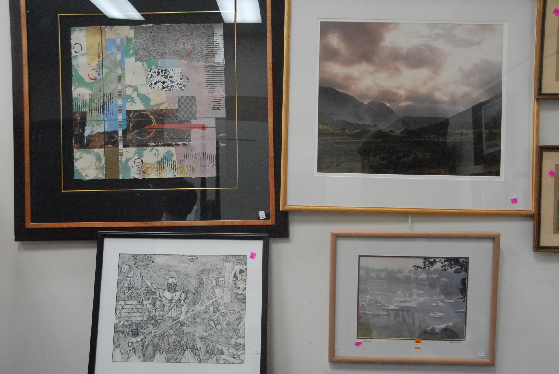 Group lot including large color photo signed Fisher of Glensheil Pass/ Highlands, Scotland 19 x 27, multimedia signed L. Kesler, photograph of Rockport Harbor, and print.