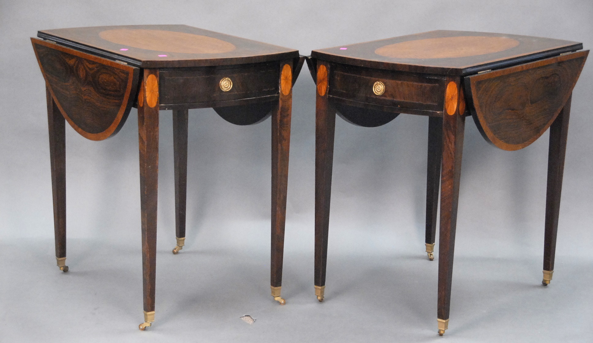 Pair of inlaid mahogany Federal style Pembroke drop leaf tables.