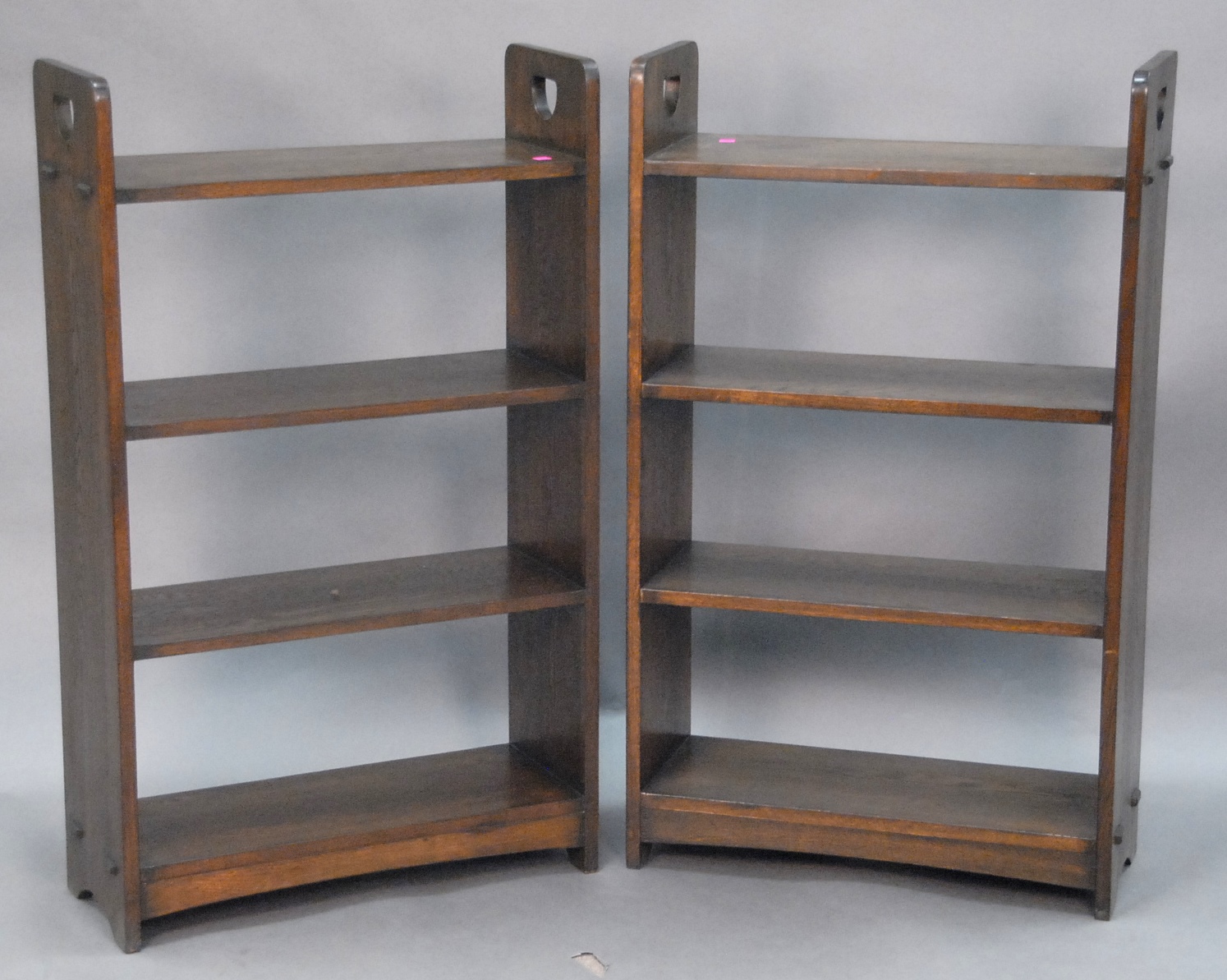 Pair of reproduction mission oak style bookcases, ht. 43in. wd. 26in.