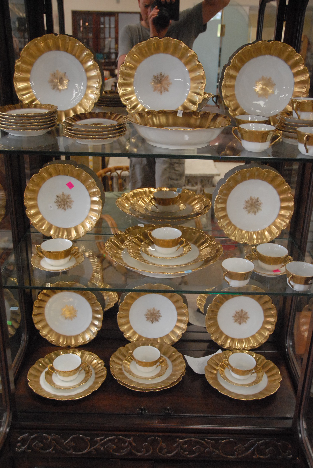 Set of Limoges dinnerware, setting for twelve plus serving pieces, fifty pieces total.