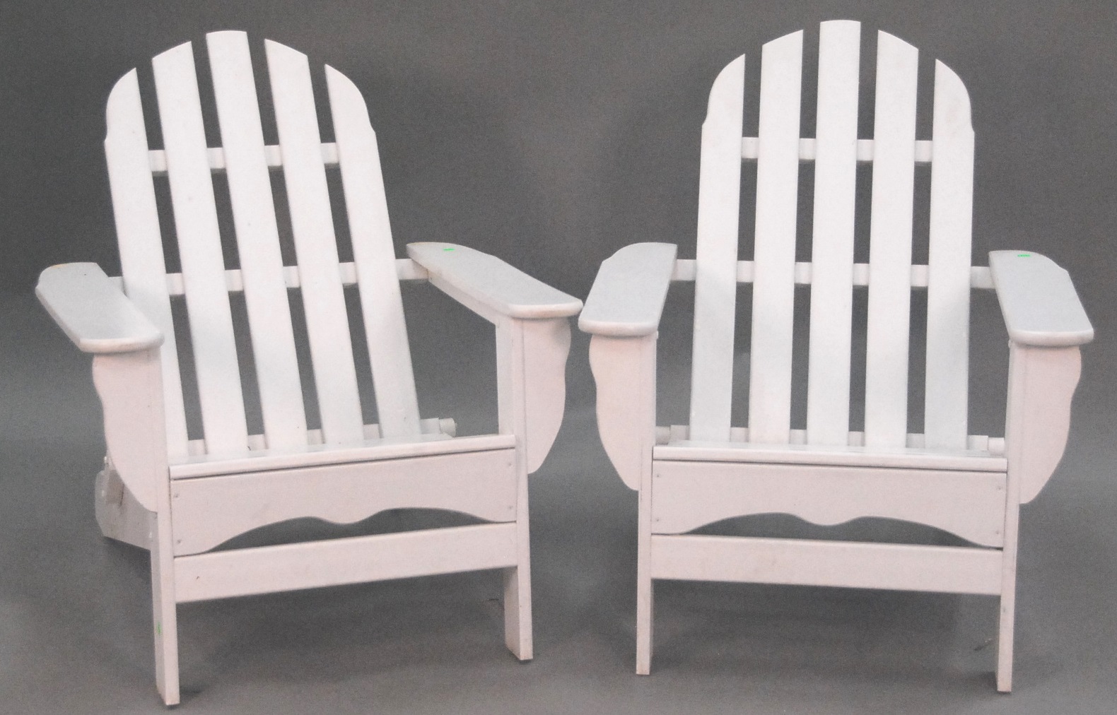 Pair of Adirondack style chairs and signed Brown Jordan tea cart.
