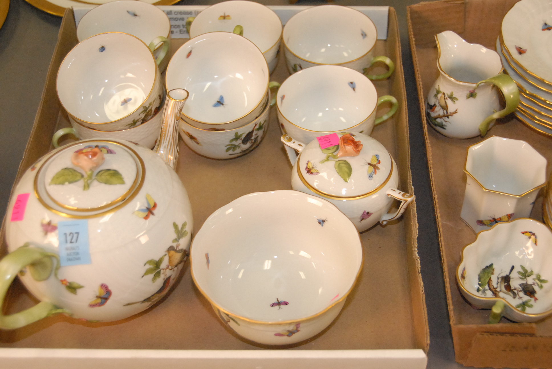 Herend thirty piece dessert set with teapot, sugar, creamer, cups, saucers, and small plates.