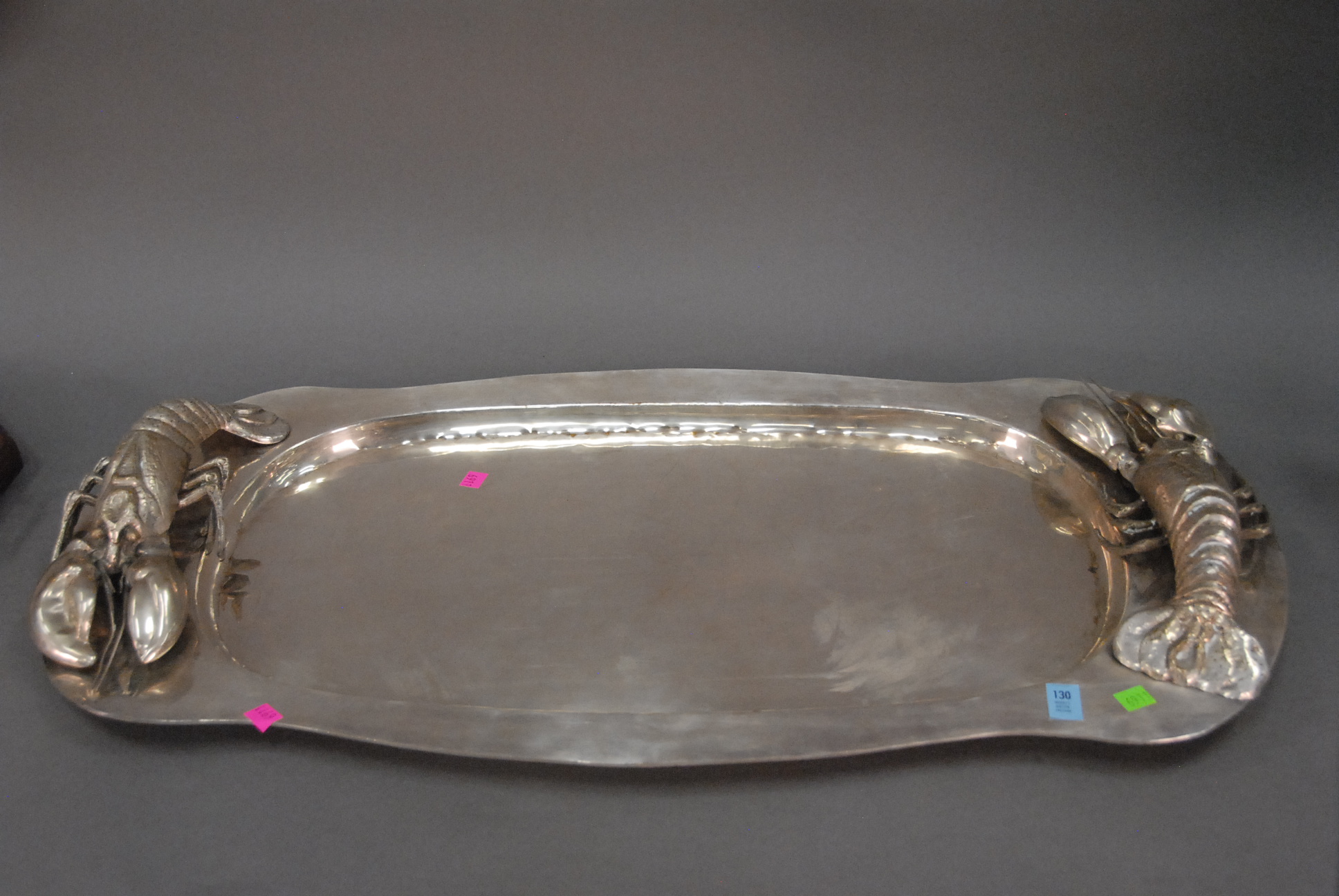 Franco Lagini Lapini large silverplated lobster tray mounted with life-like lobster, signed on back and made in Italy, lg. 36in.