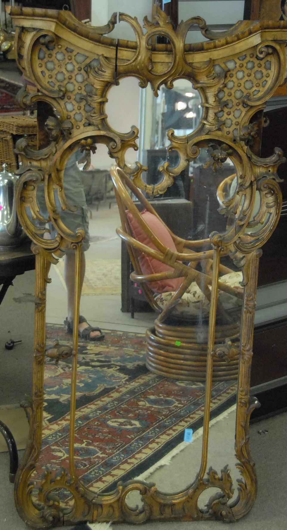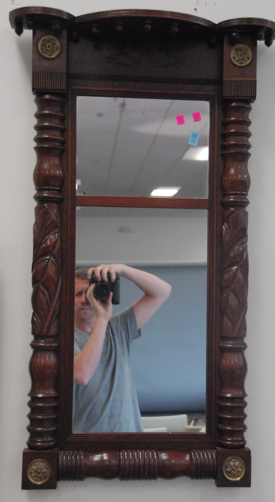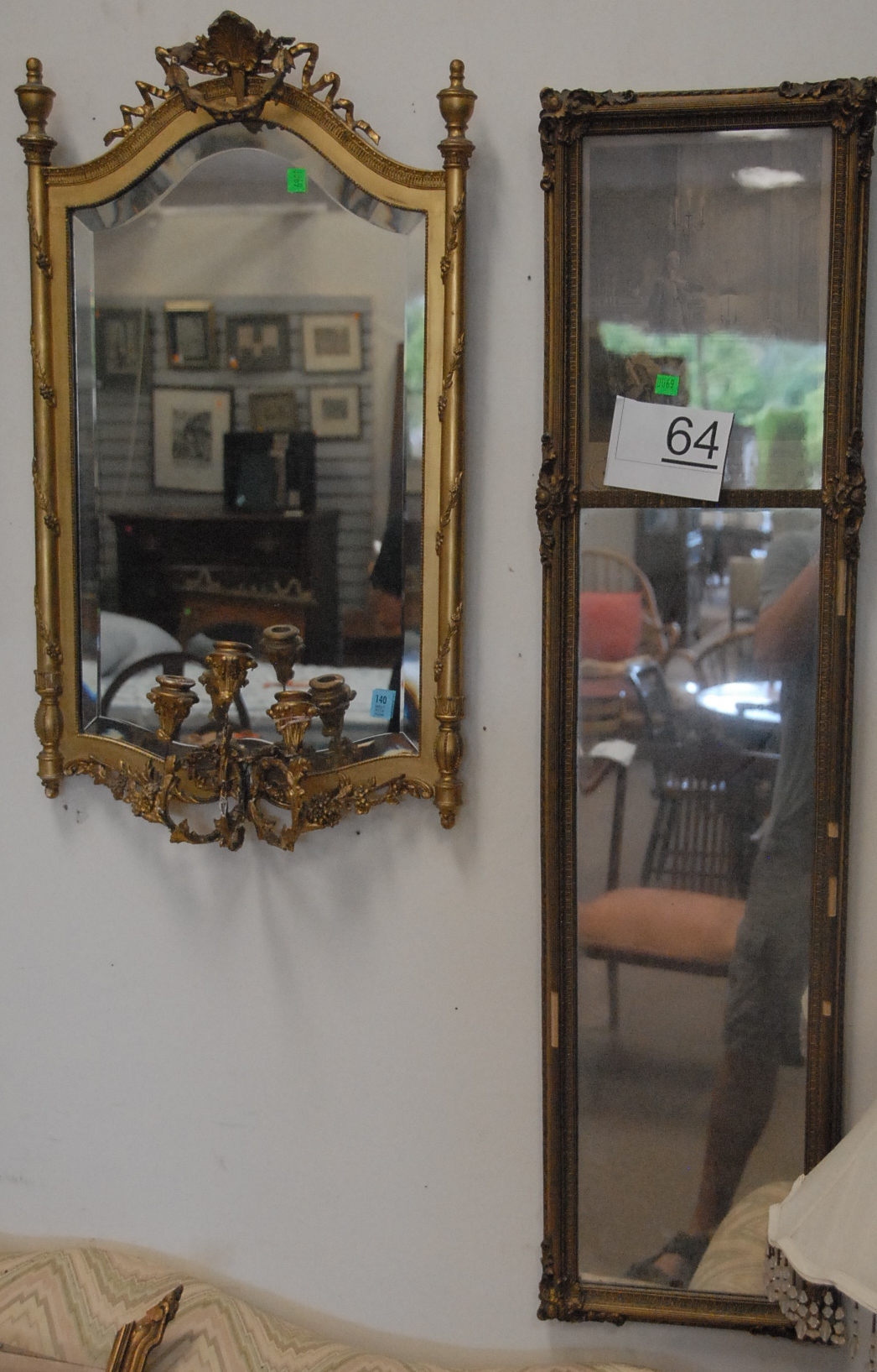 Two mirrors mounted with three candle holders, minor chips, ht. 29in. & ht. 45in.