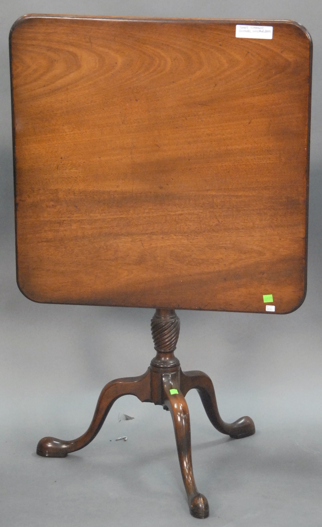 Signed Kittinger Colonial Williamsburg mahogany tip table, ht. 27in., top: 25 x 25.