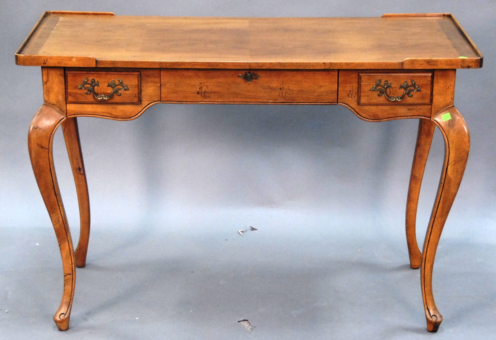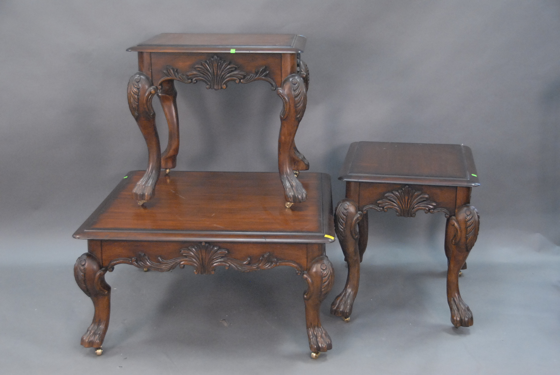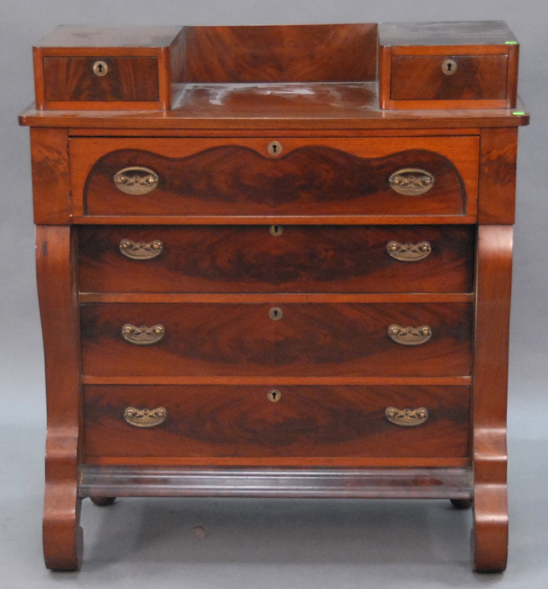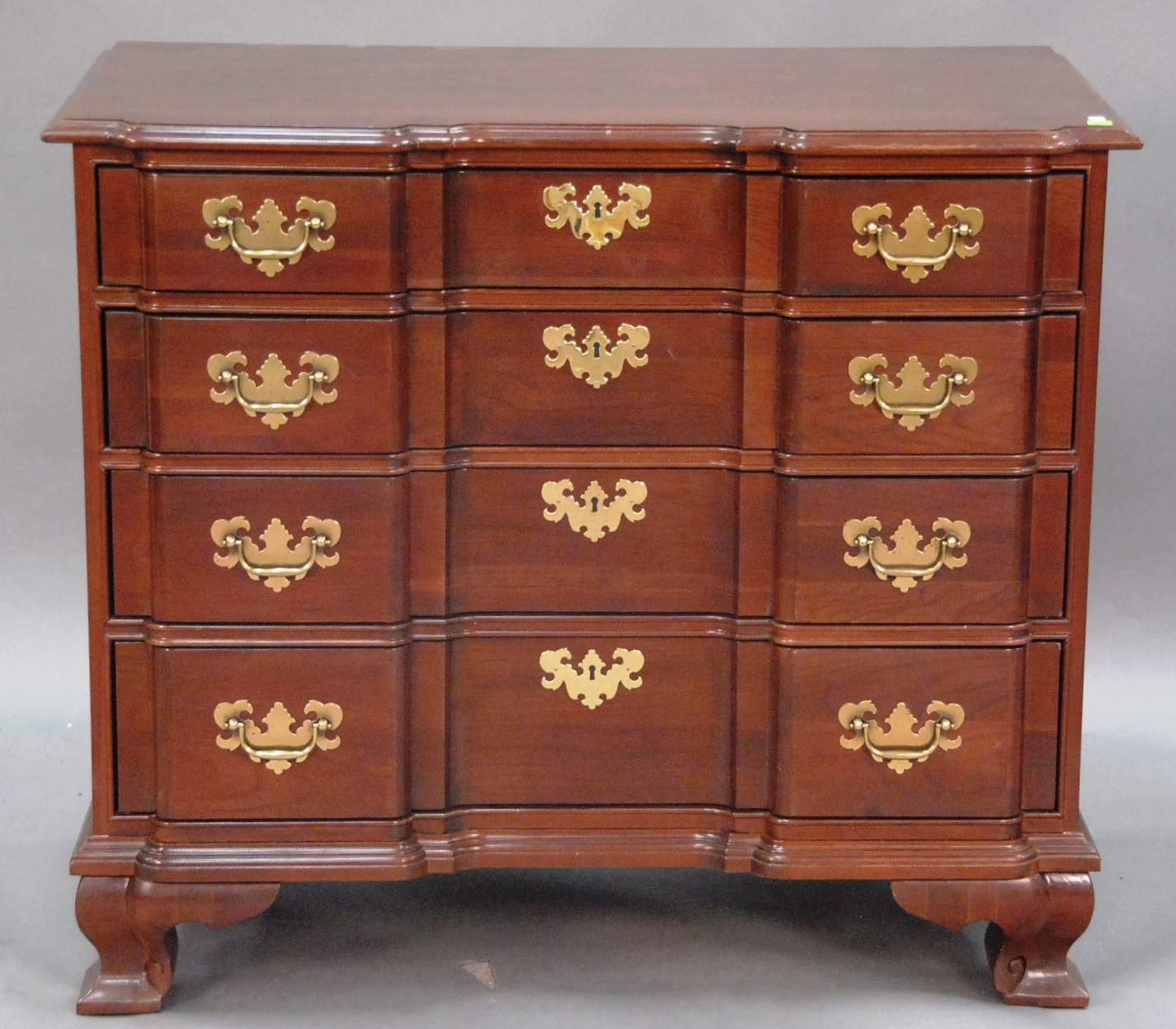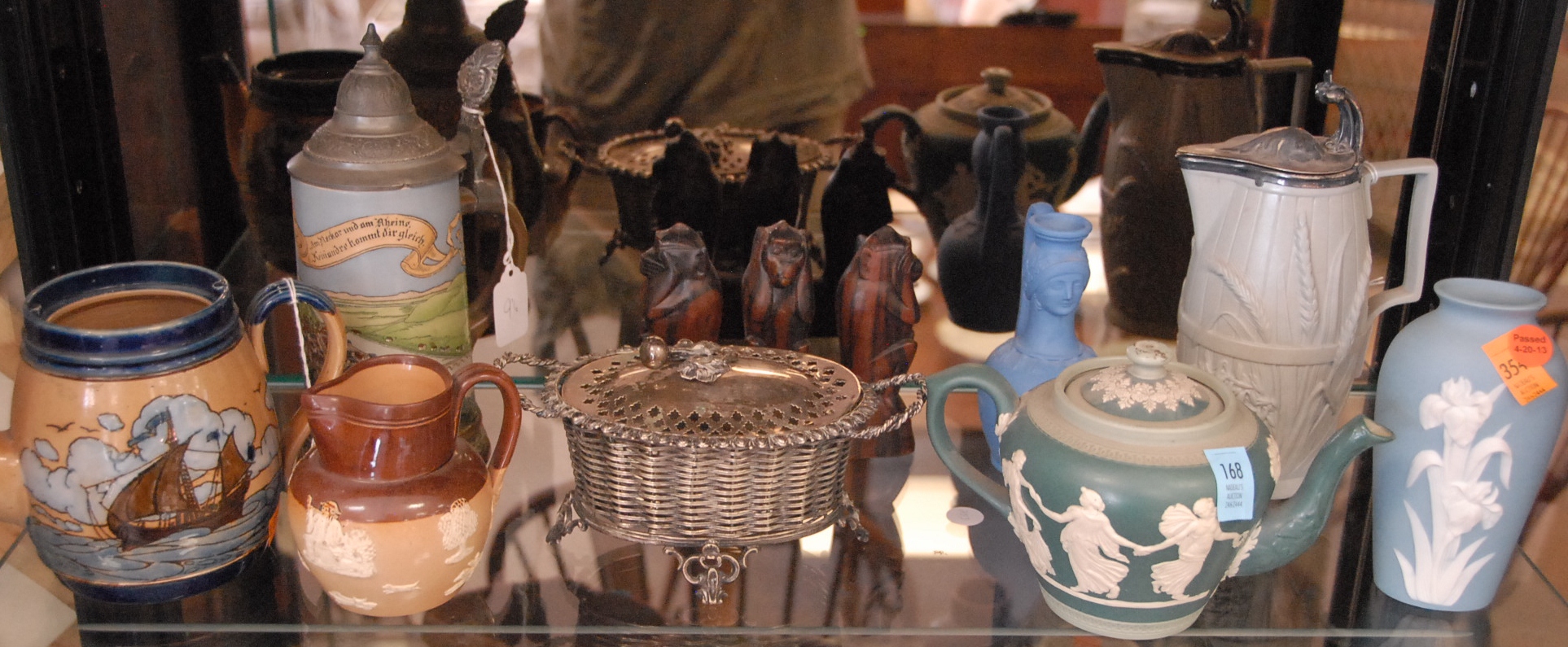 Three piece reproduction lot including Eldridge Wheeler Queen Anne style mirror and two paint decorated green oval boxes marked C. F. Hopf Kennebunk, Maine.