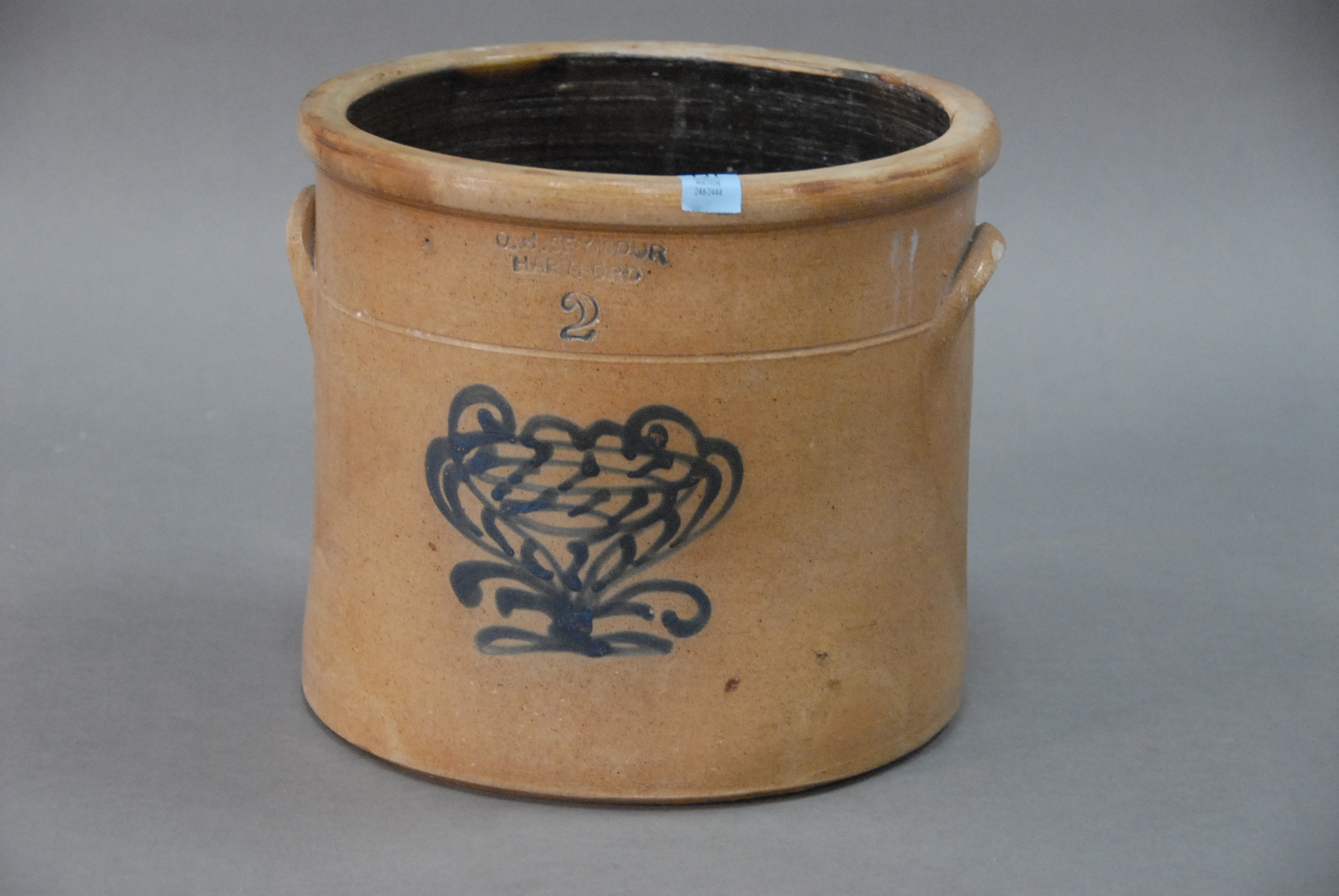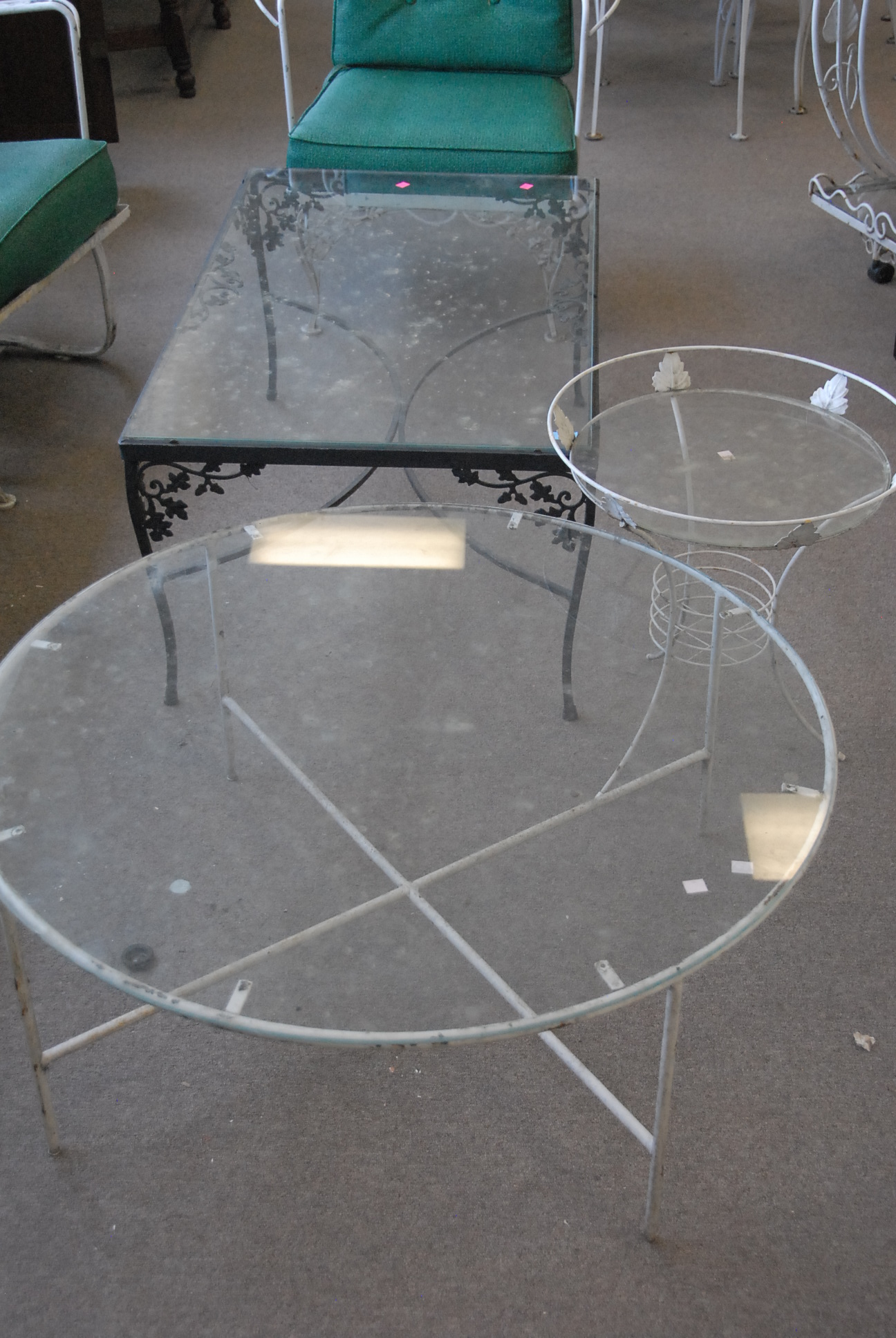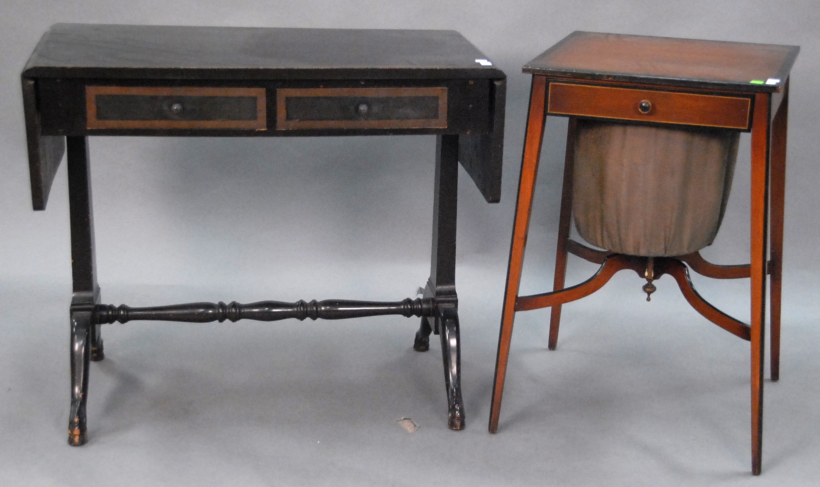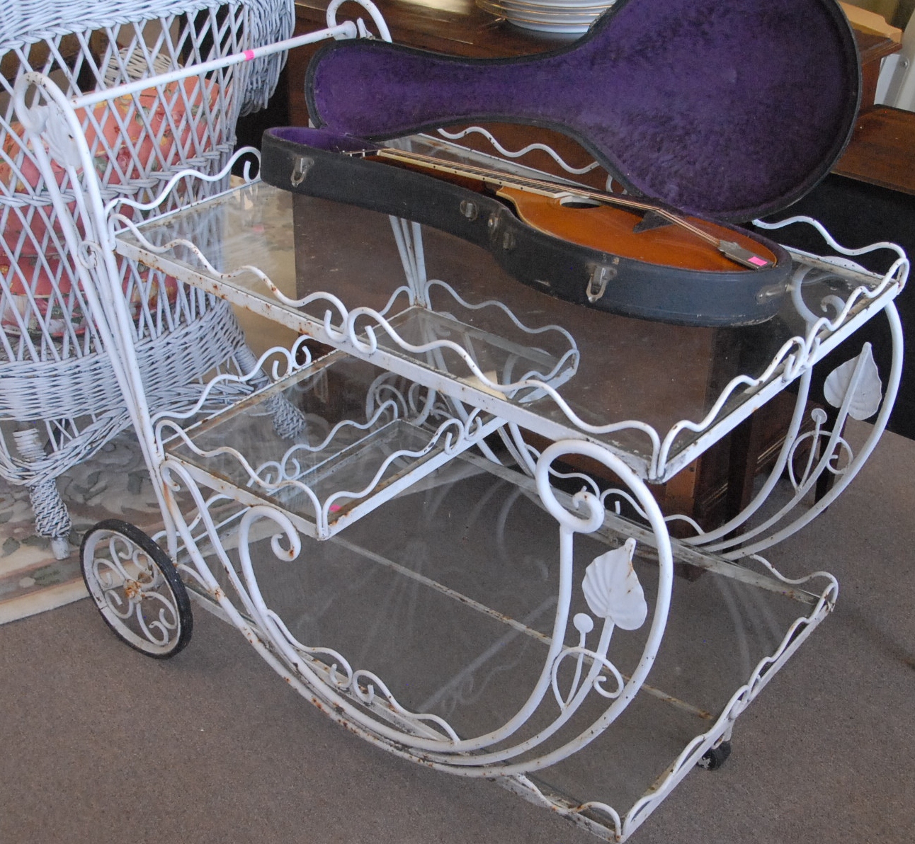 Three piece reproduction lot including Eldridge Wheeler Queen Anne style mirror and two paint decorated green oval boxes marked C. F. Hopf Kennebunk, Maine.