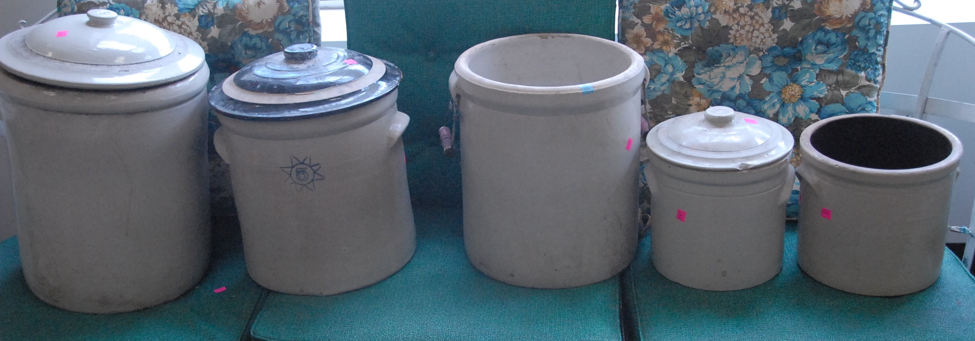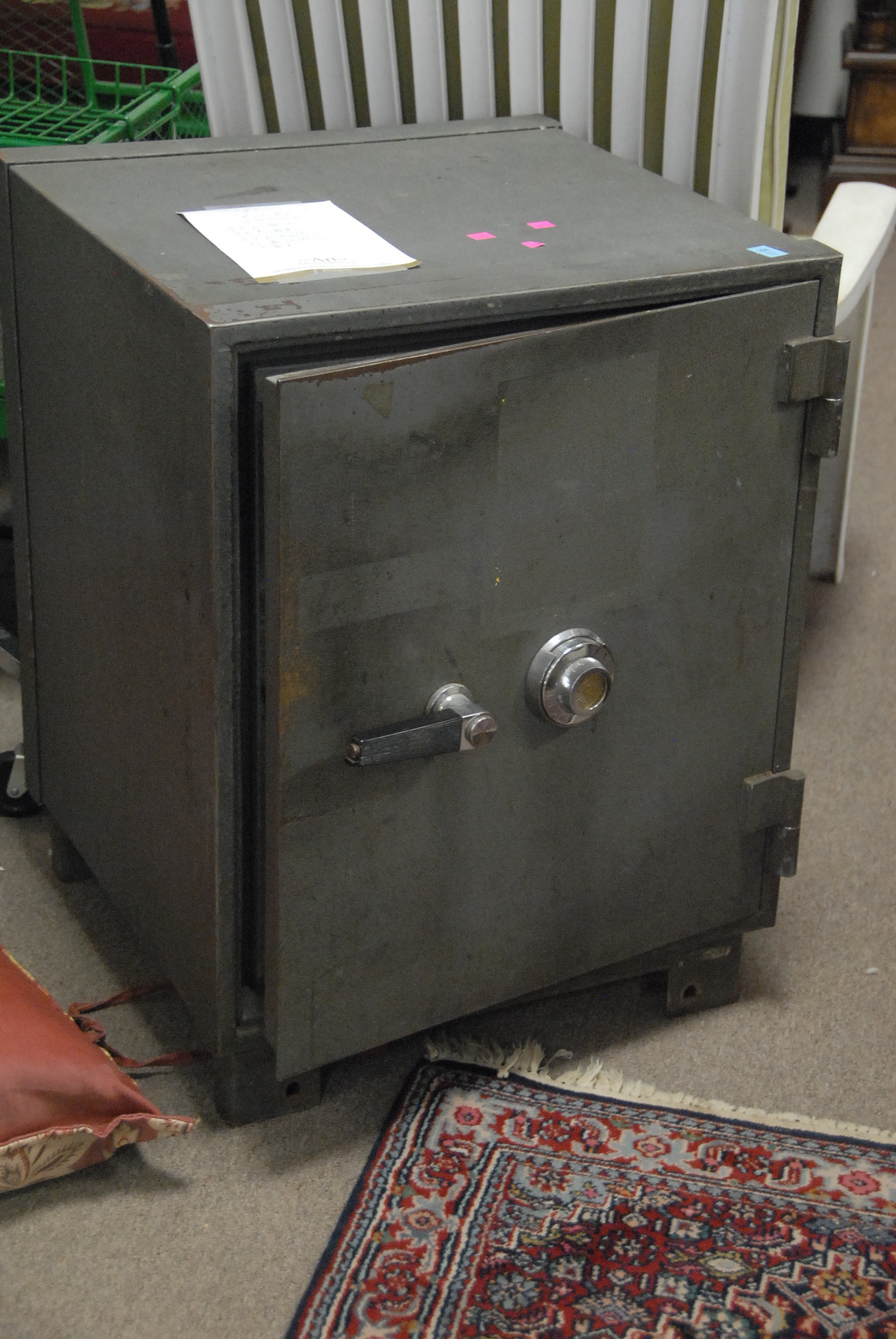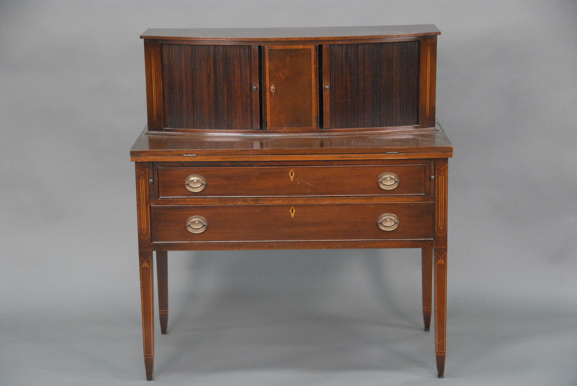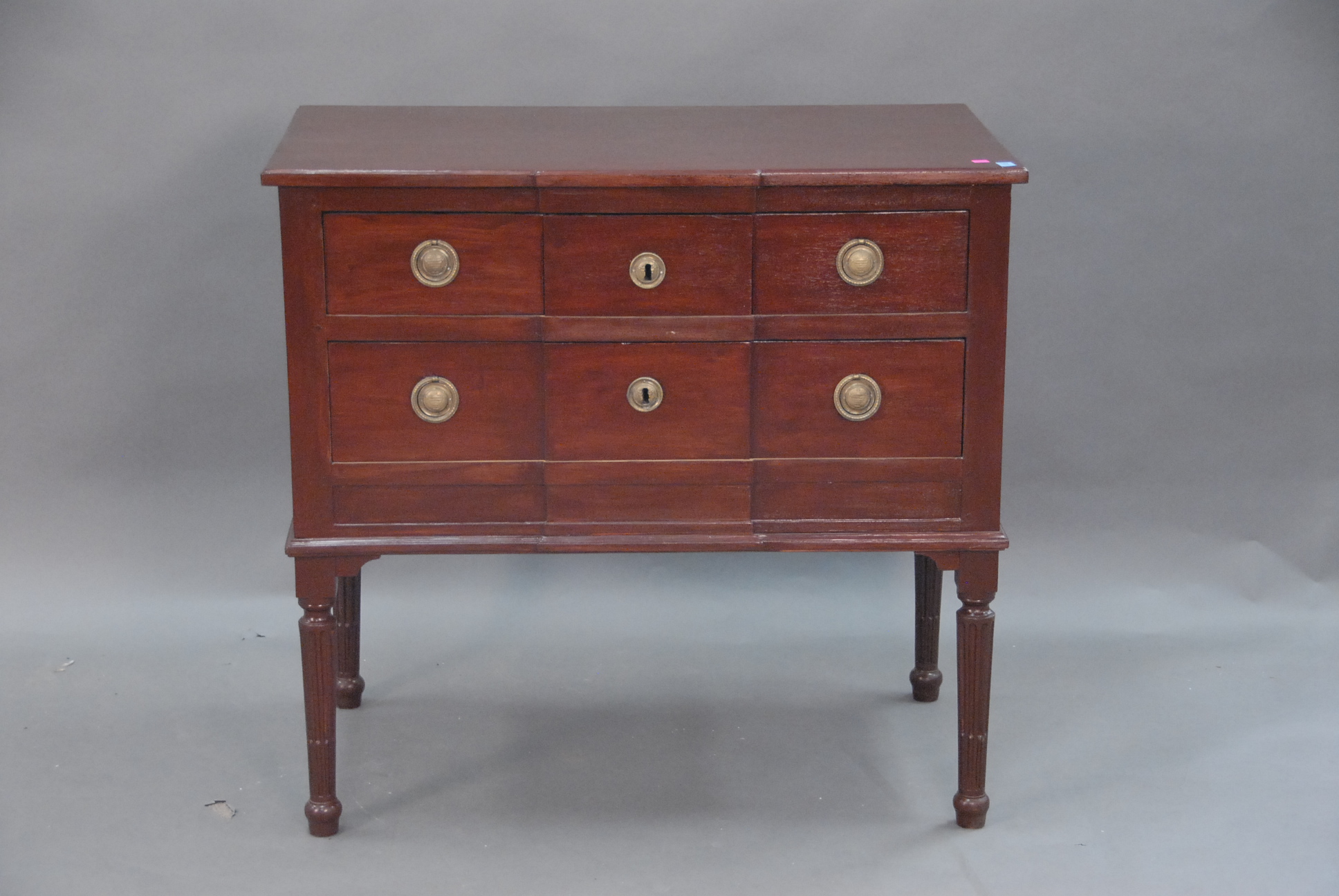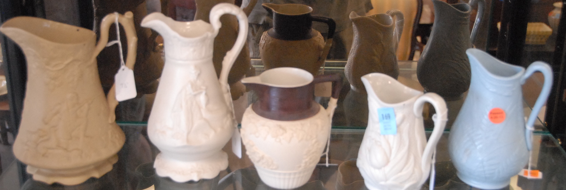 Three piece reproduction lot including Eldridge Wheeler Queen Anne style mirror and two paint decorated green oval boxes marked C. F. Hopf Kennebunk, Maine.