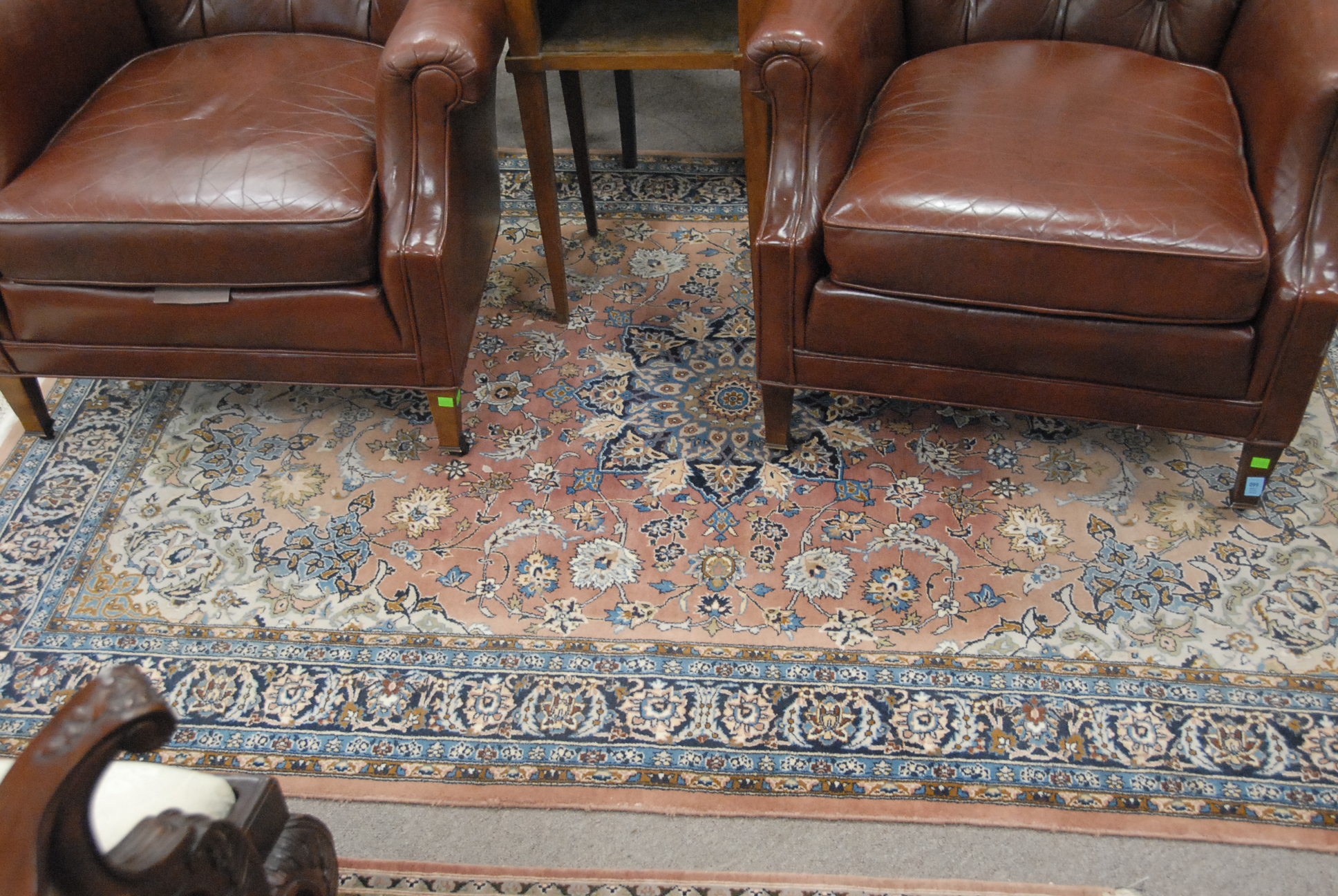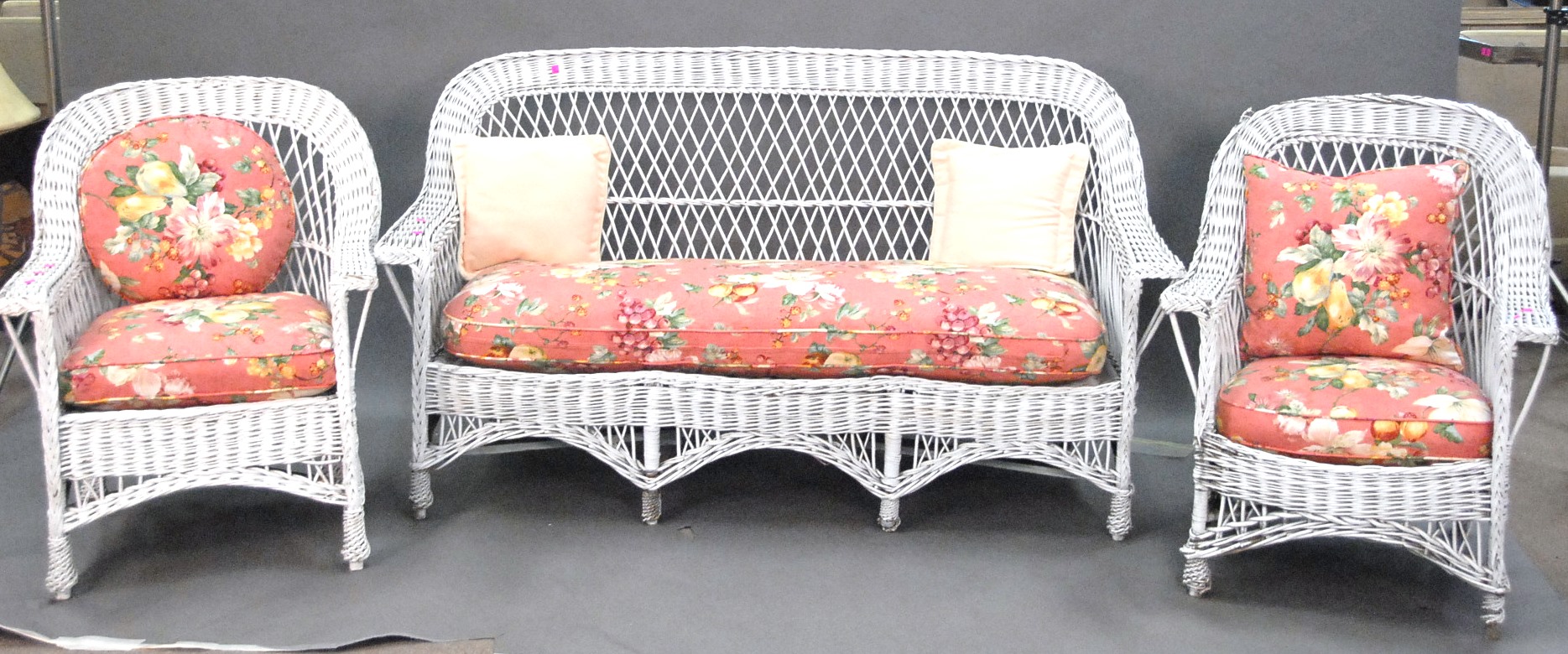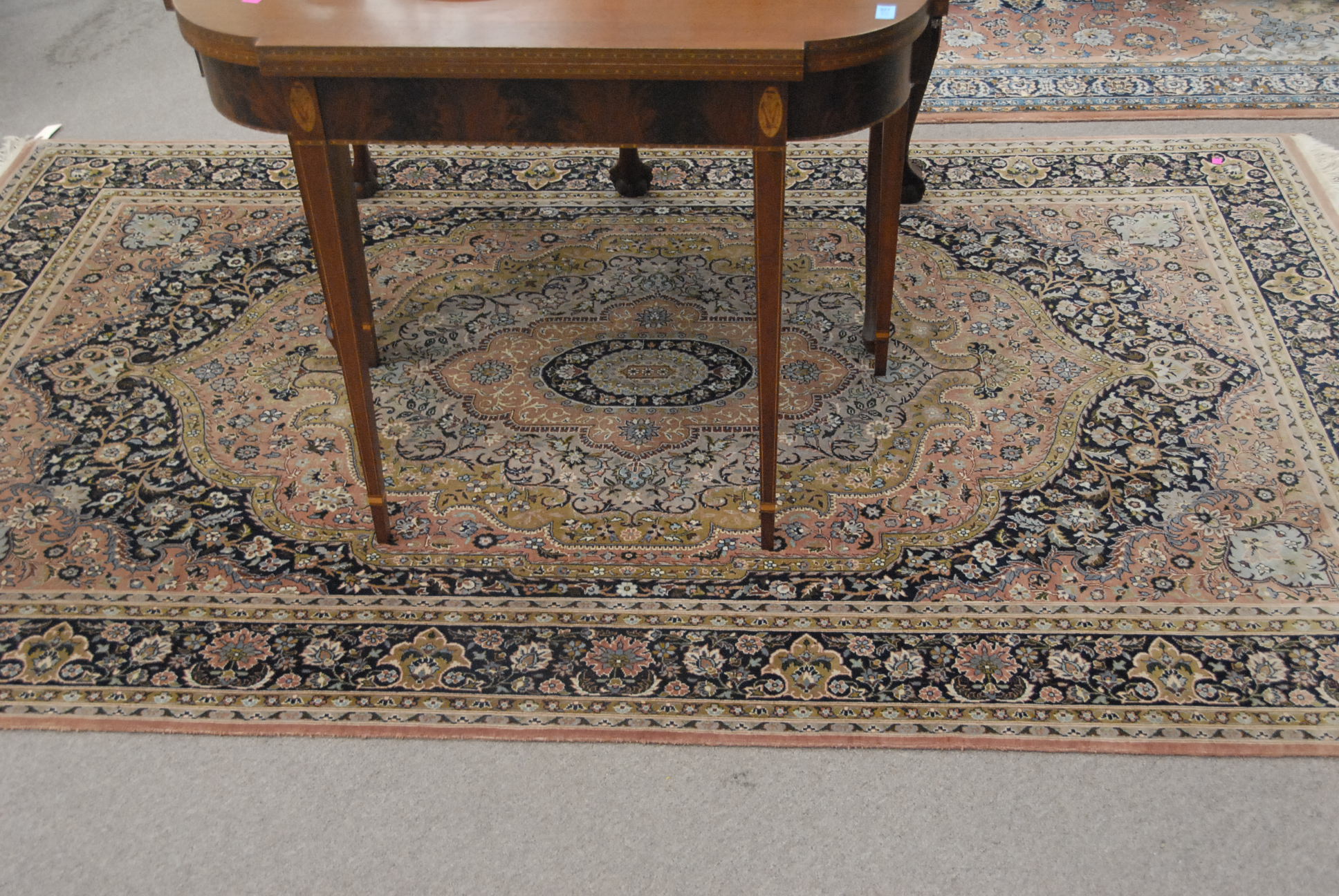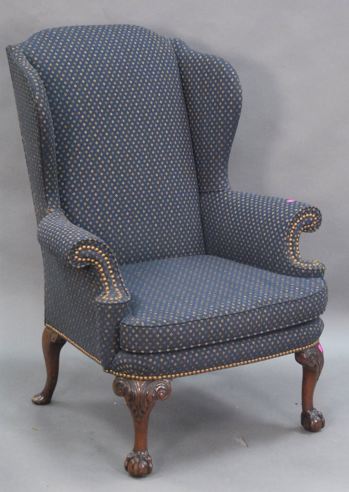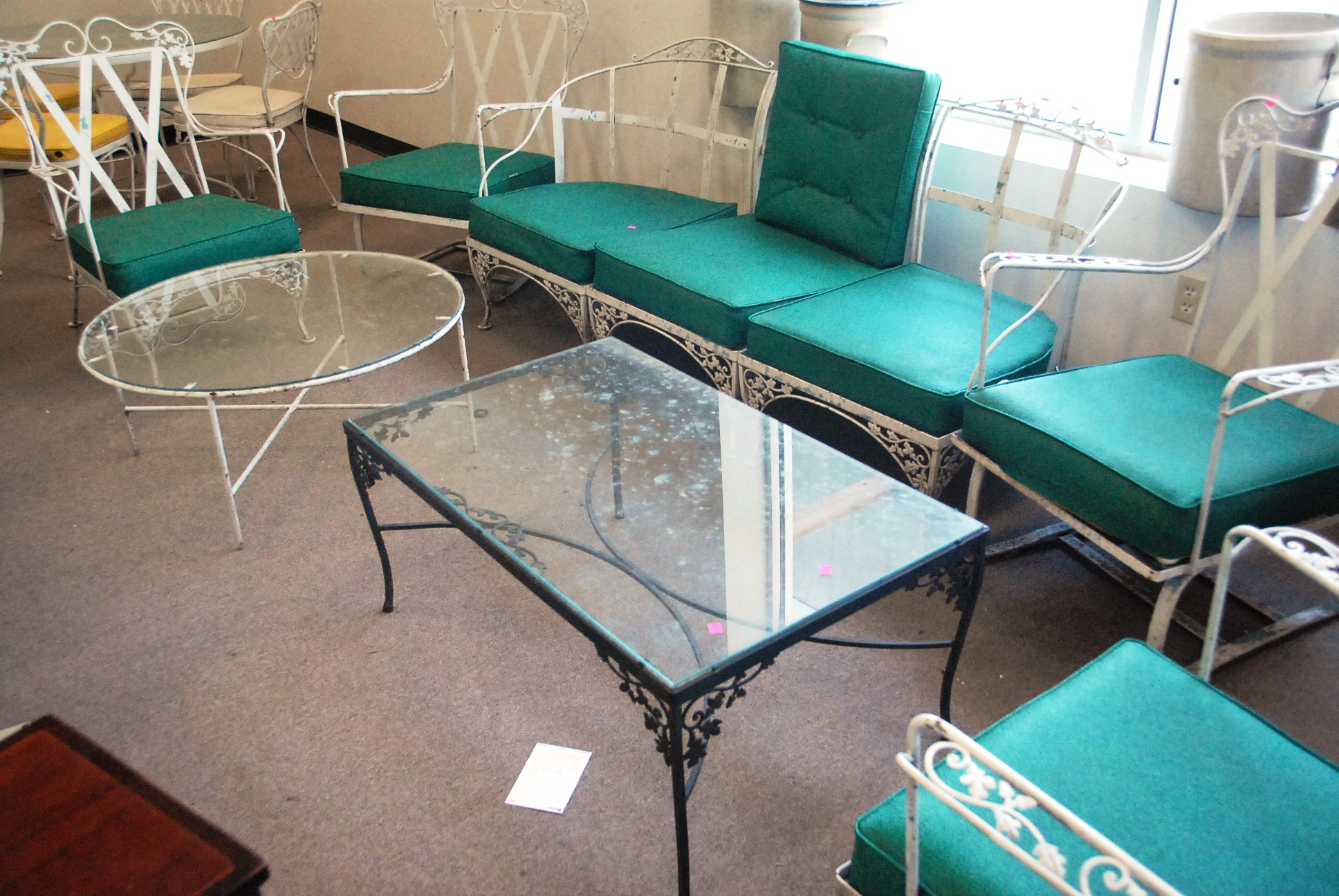 Three piece reproduction lot including Eldridge Wheeler Queen Anne style mirror and two paint decorated green oval boxes marked C. F. Hopf Kennebunk, Maine.