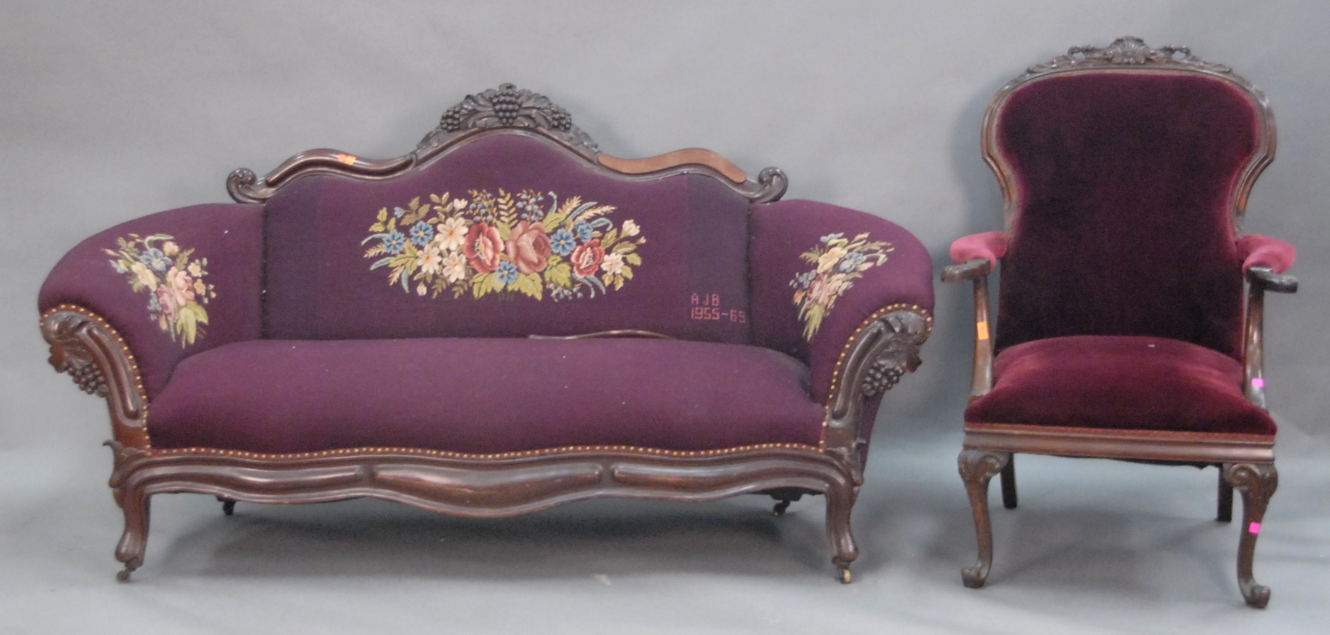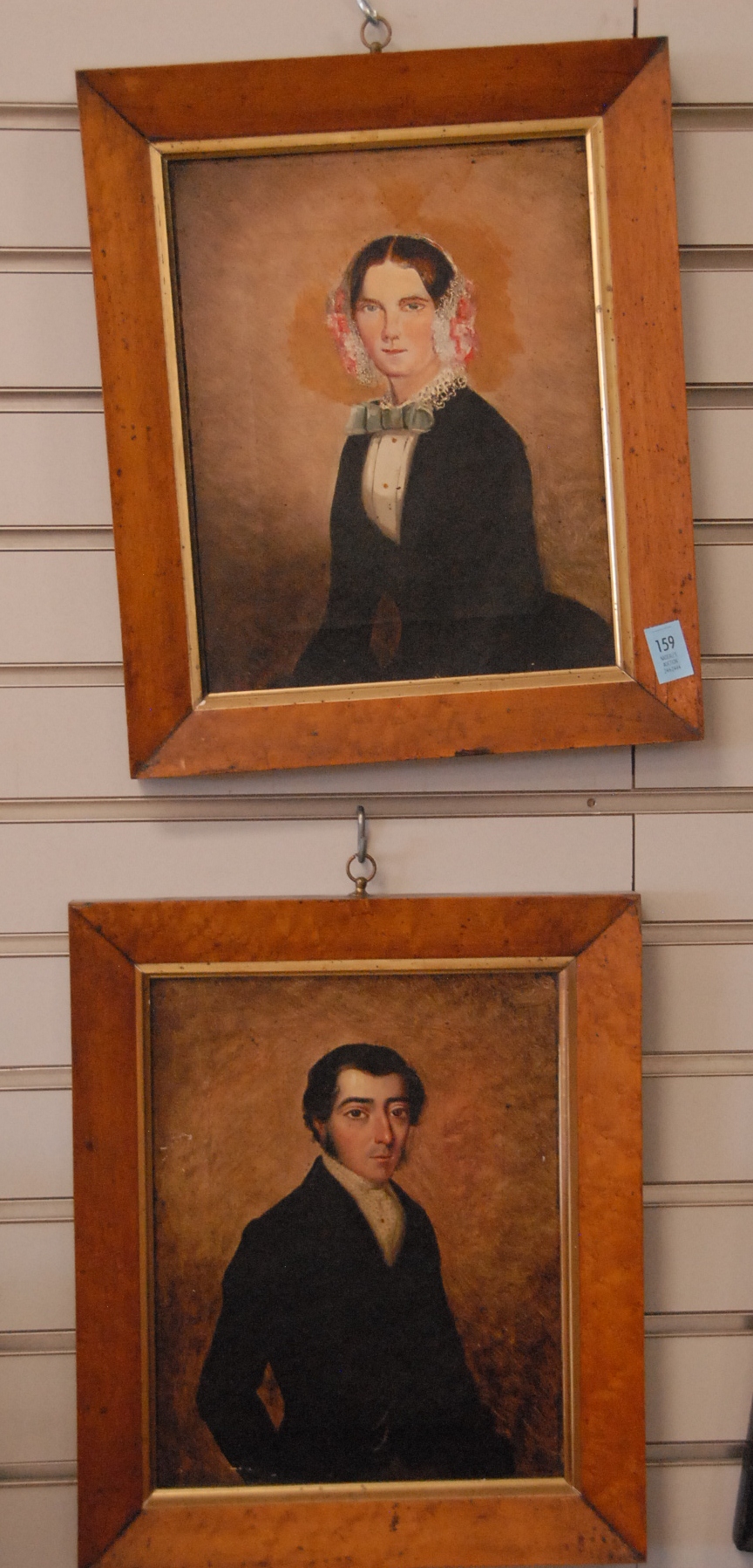 Three paintings to include an oil on mahogany panel of two sailing ships one flying British flag, still life of woodstove and chair, and painting of a dog.