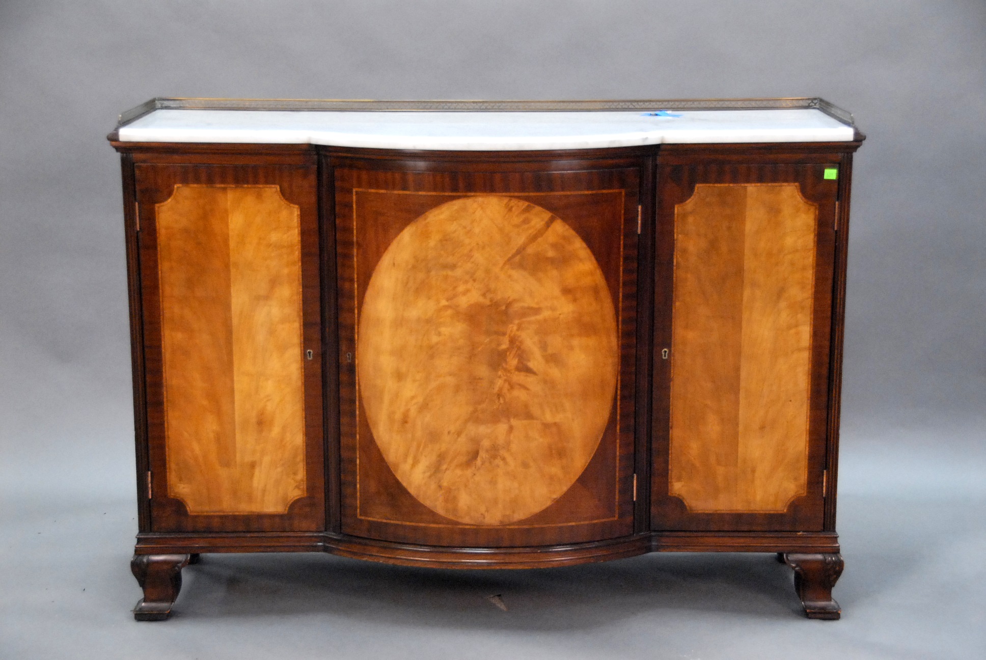 Marble top server with light wood panel inlays in doors, ht. 36in. wd. 52in. dp. 19in.