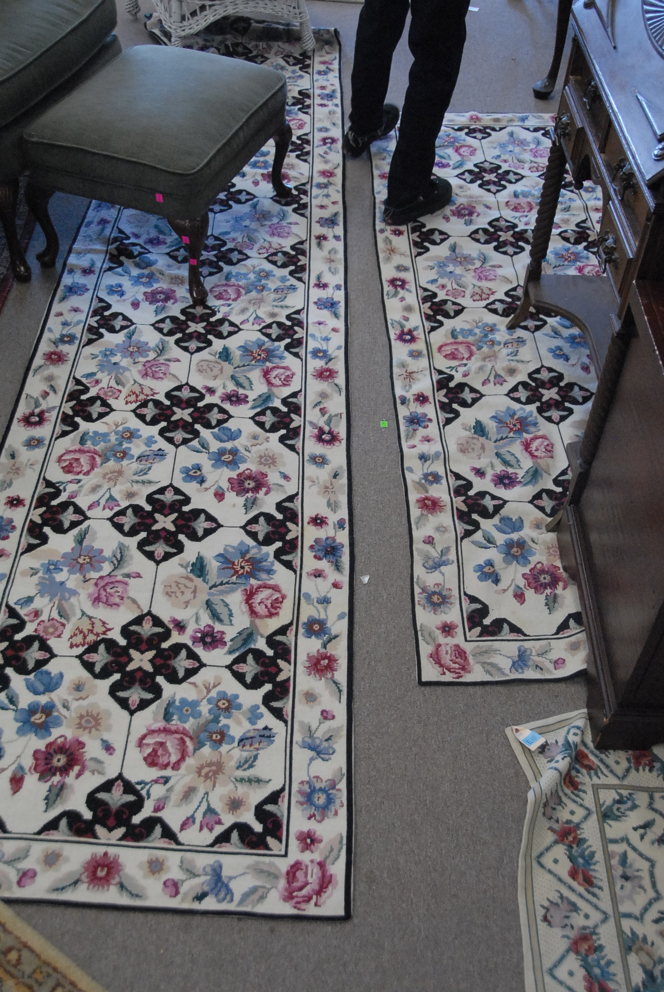 Three needlework runners, one is 4’11 x 2’11.