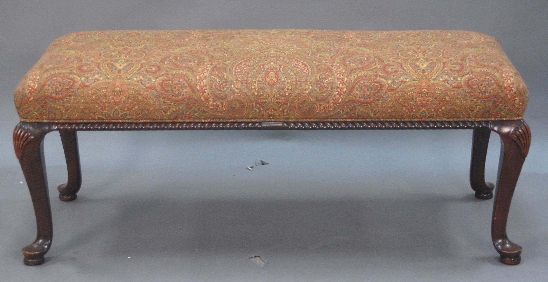 Queen Anne style bench with upholstered top.