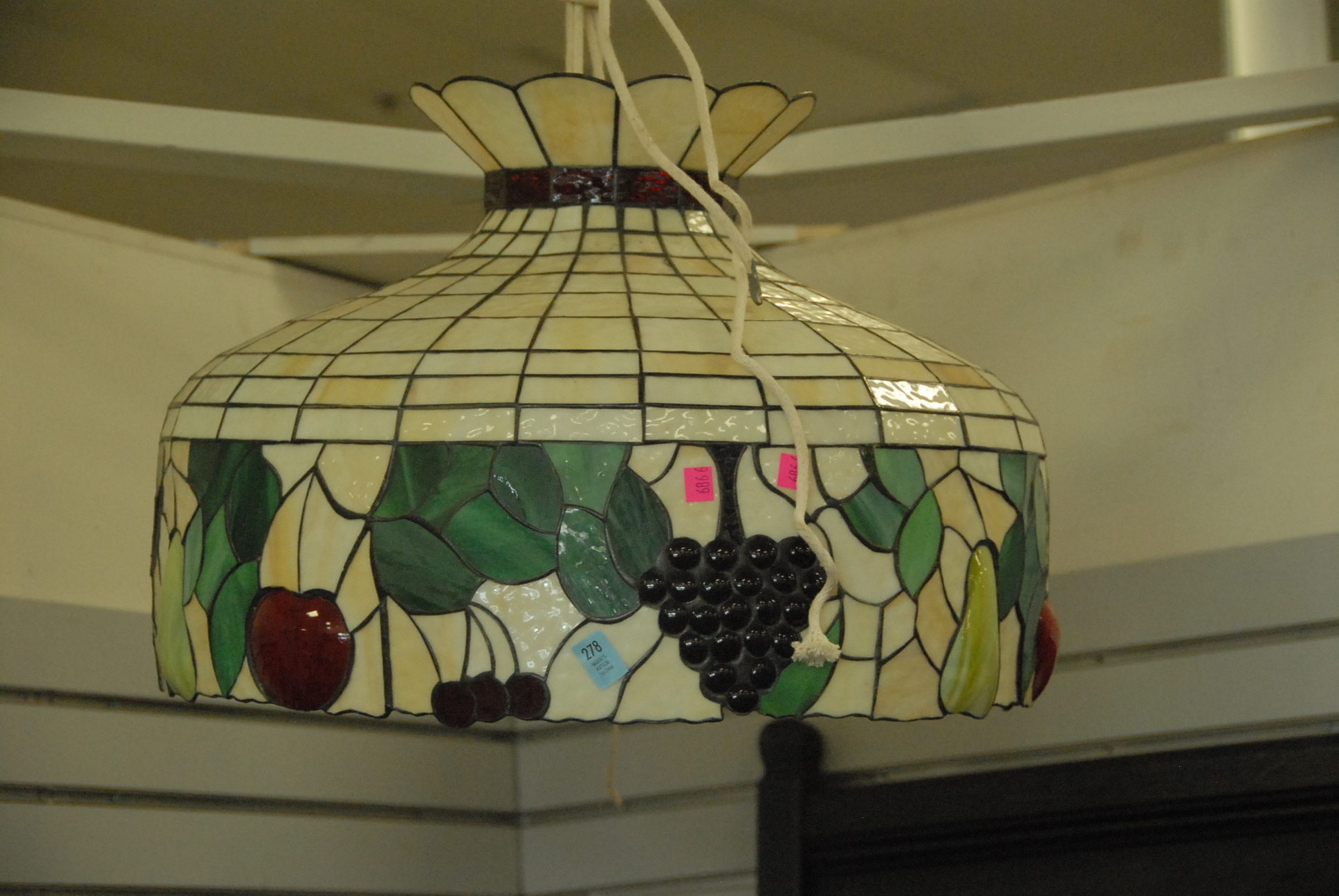 Two leaded glass hanging lights.
