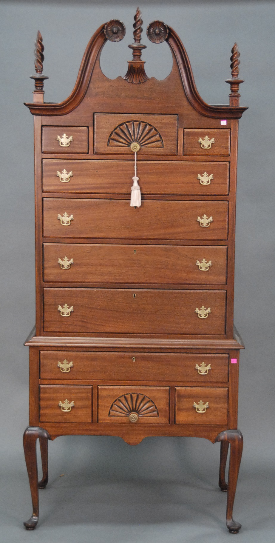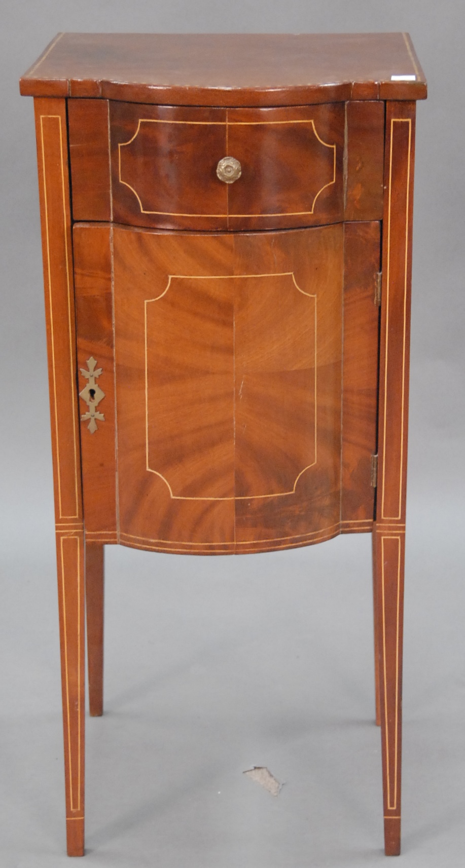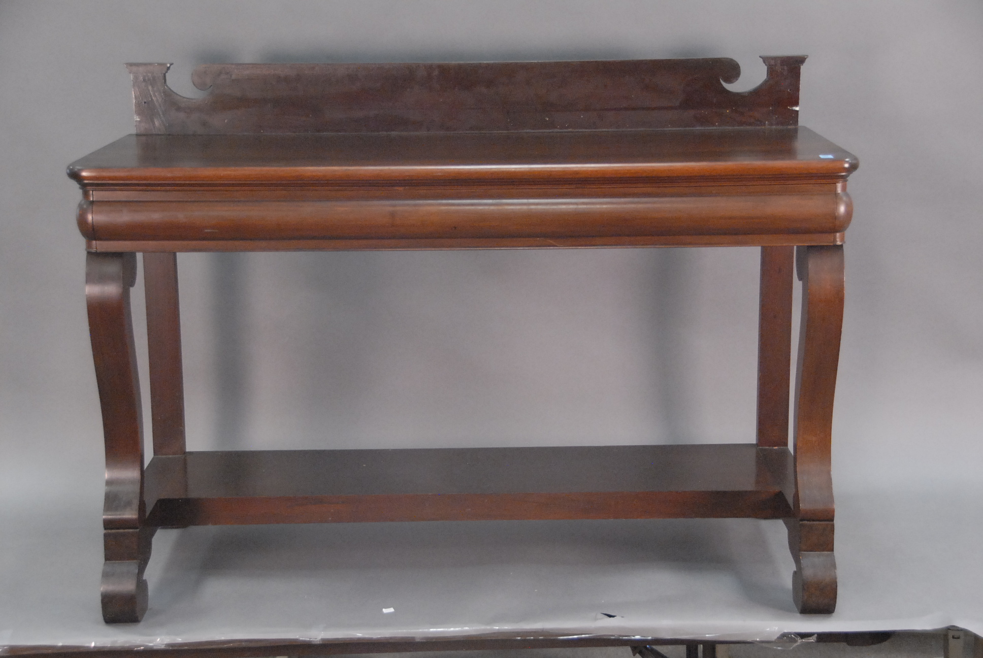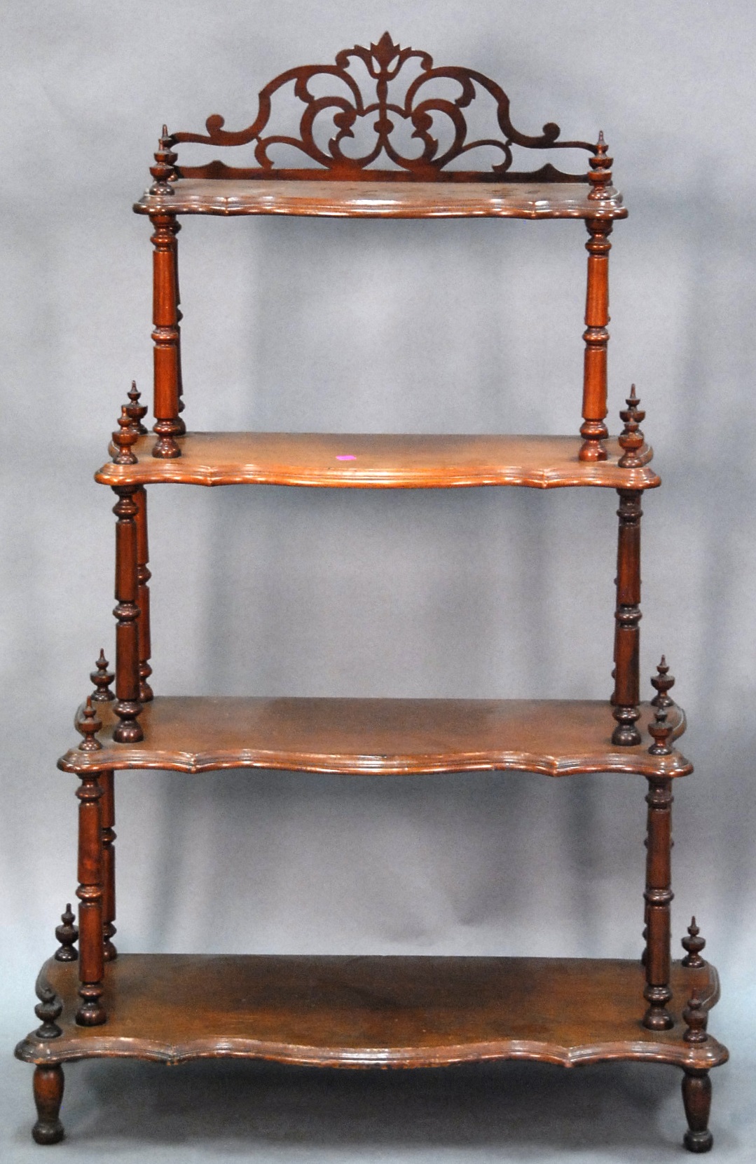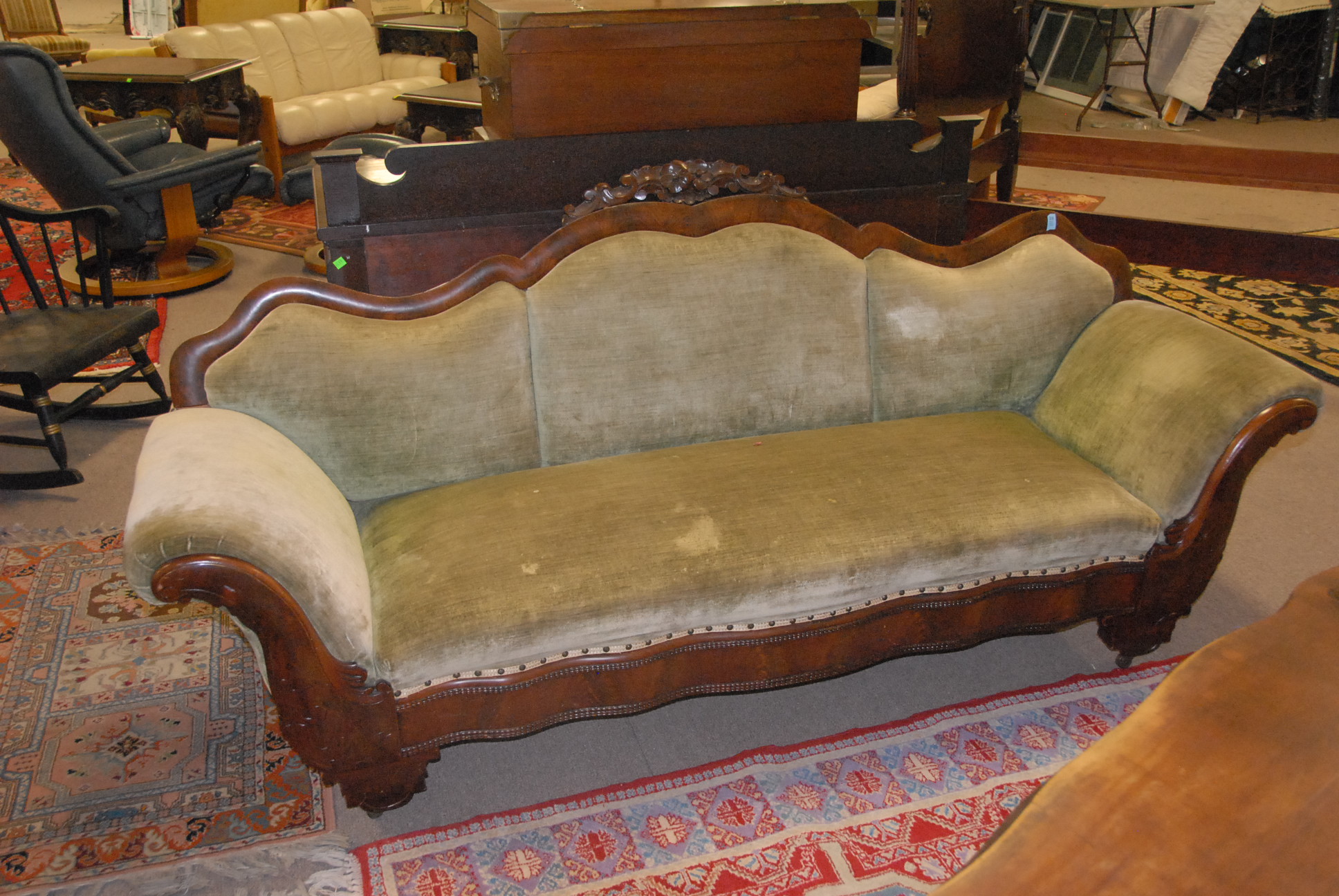 Group lot including pair of Infinity speakers, footstool with ball and claw feet, mahogany night table, cherry night table, Windsor style chair, and English style armchair.