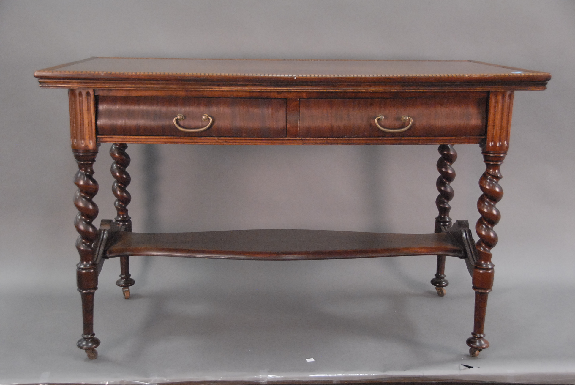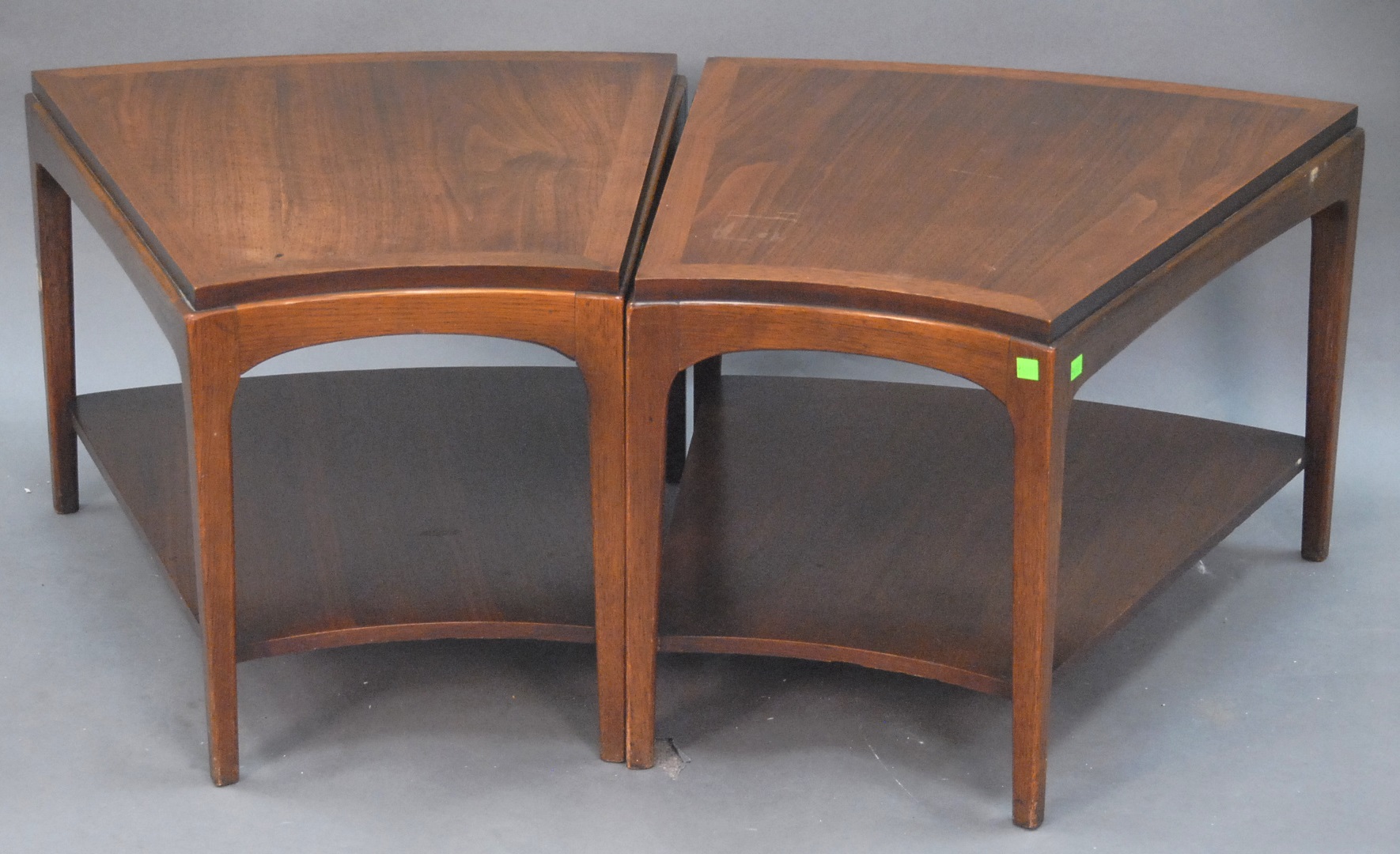 Two piece lot, a crystal and frosted crystal genie coming out of lamp on burlwood base and crystal frog on plants on burlwood base, ht. 23in. & ht. 13in.