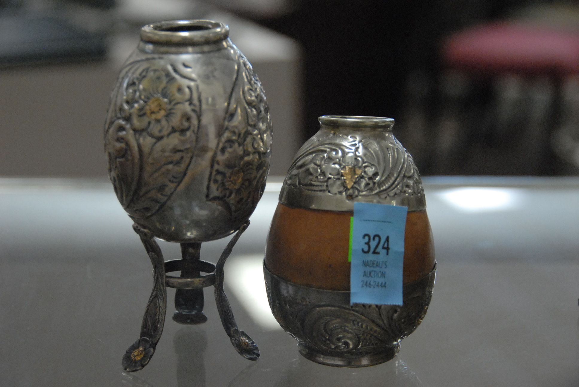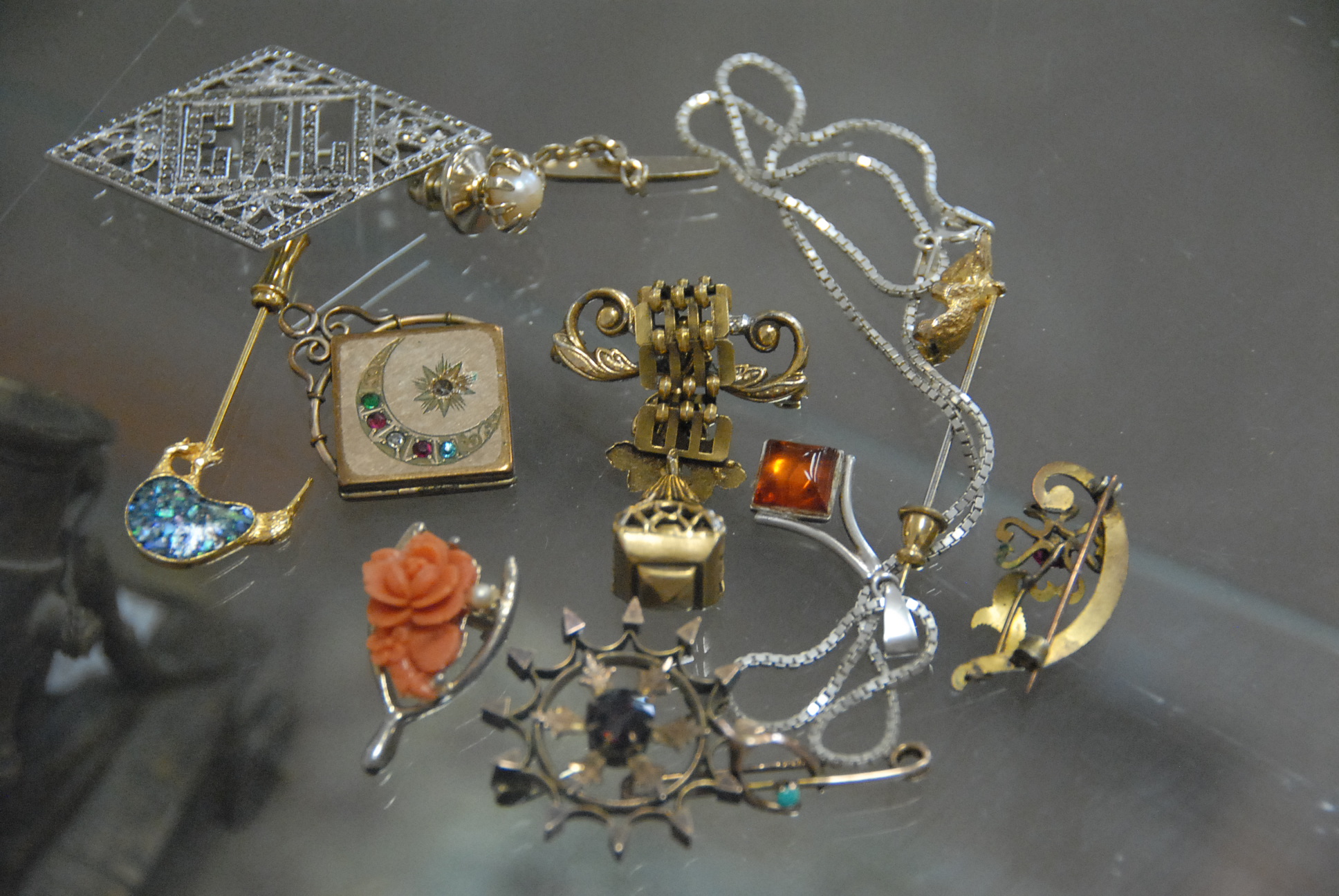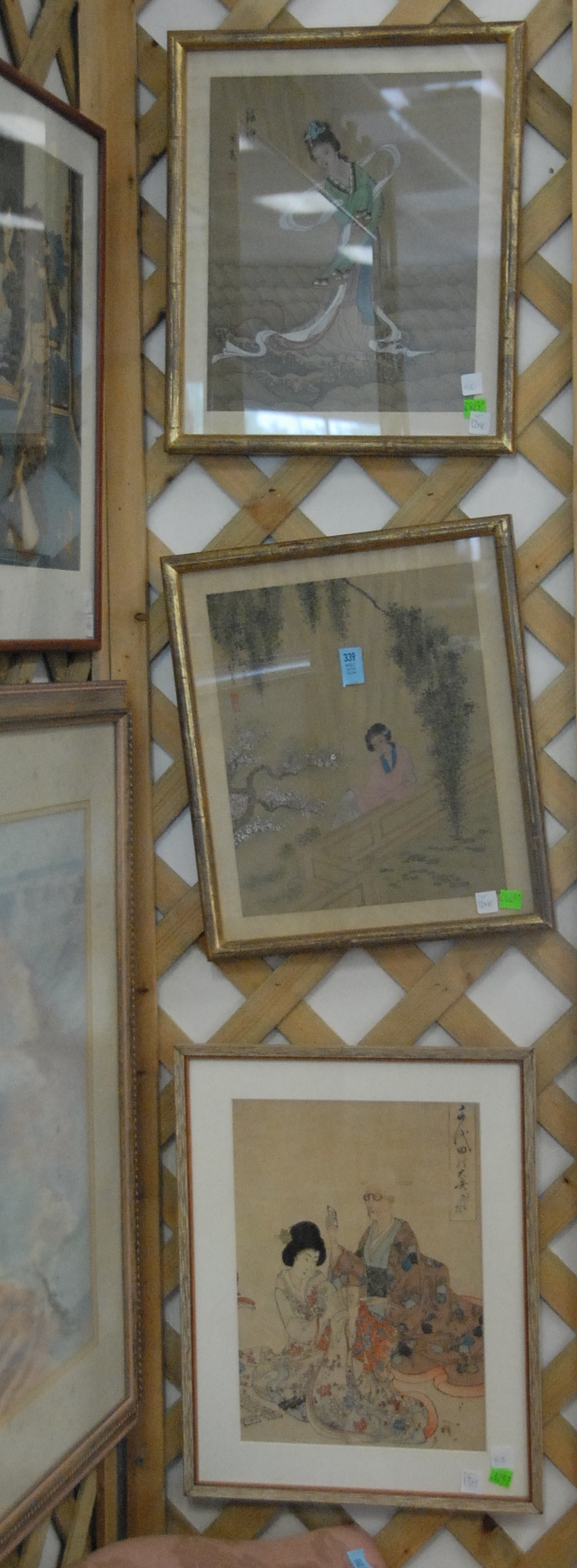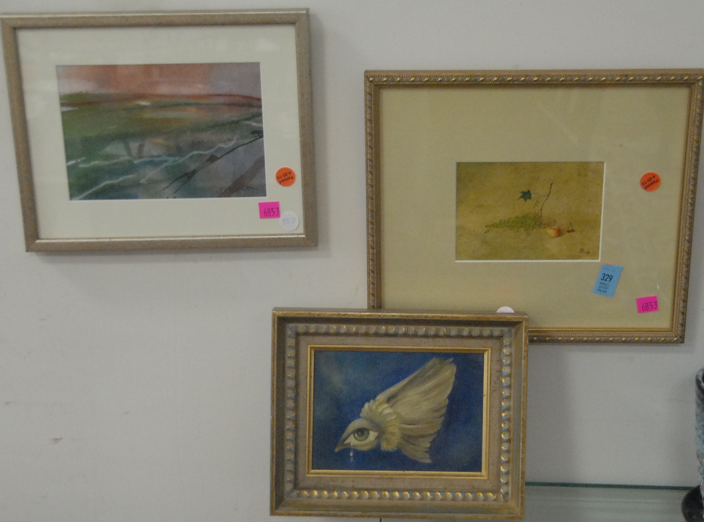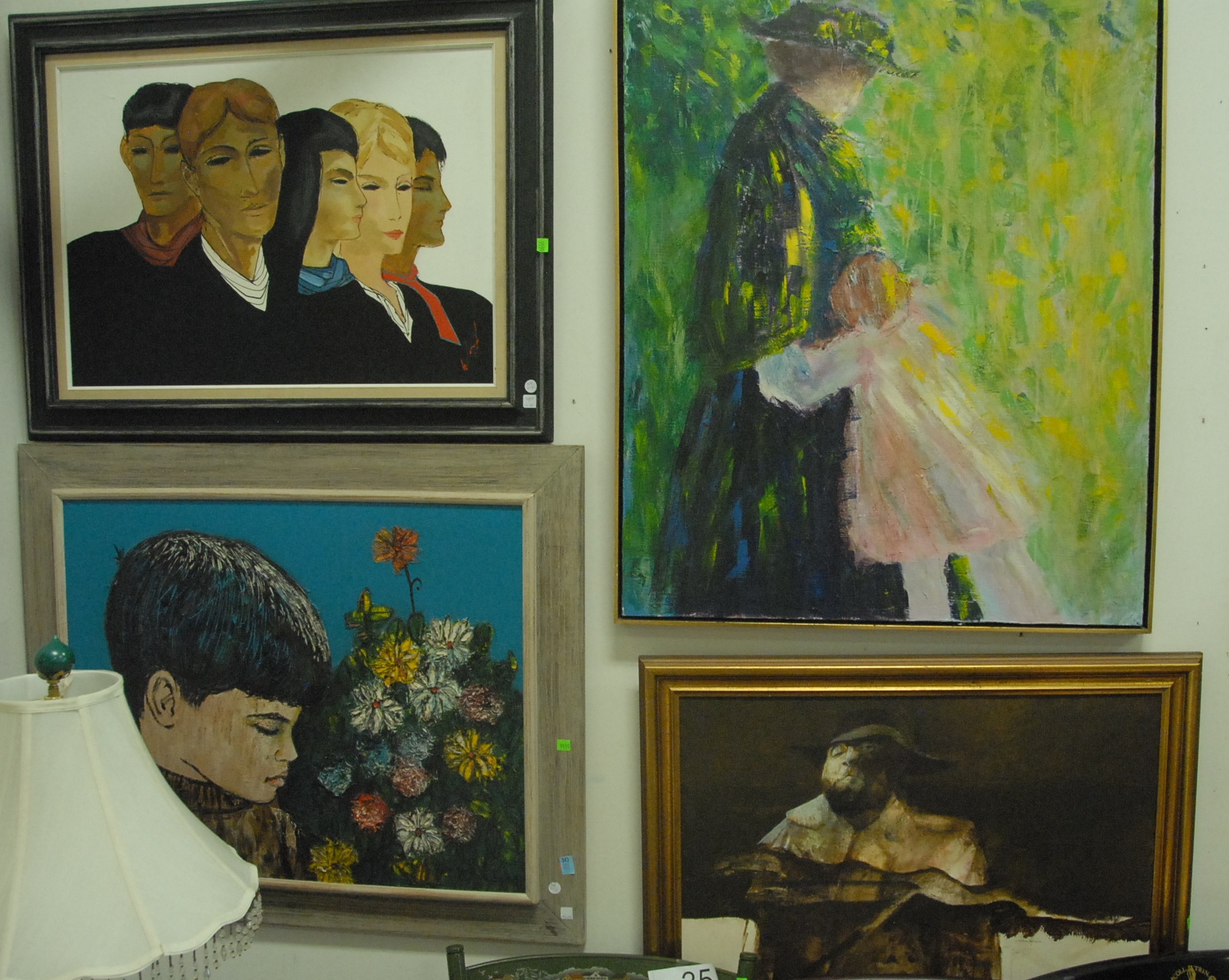 Seven box lots to include evening bags, two miniature portraits, binoculars, camera, prints, silverplated toast holders, two Royal Doulton Winston Churchill Tobys, and misc.