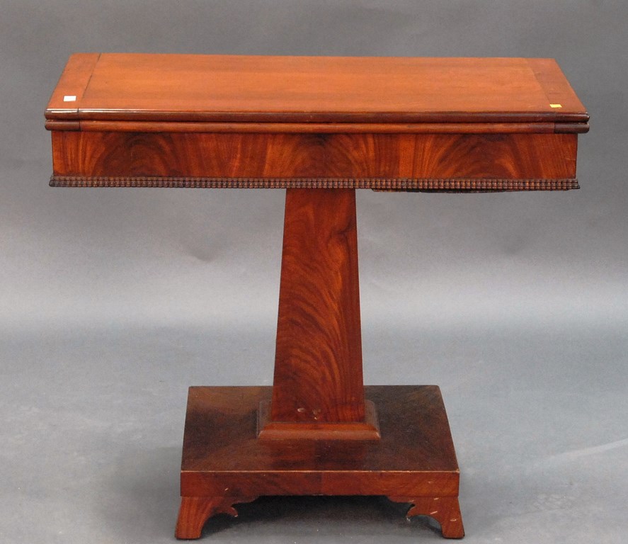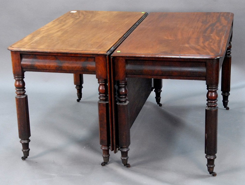 Two part Sheraton drop leaf dining table, wd. 49in. open lg. 47in. closed lg. 24in., total open 94in.
