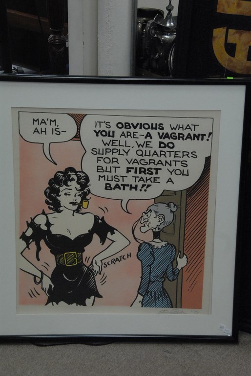 Cartoon poster with young woman and older woman signed and dated lower right.