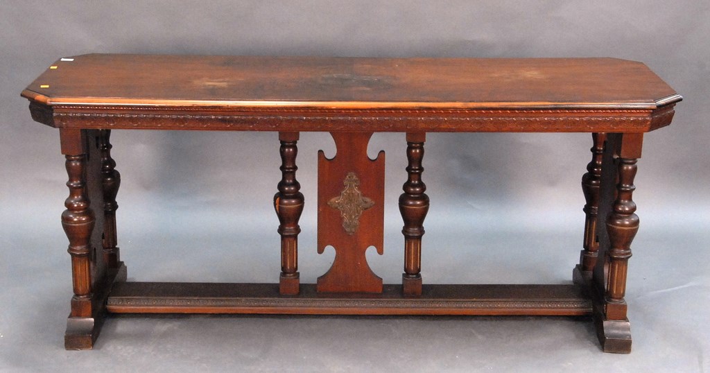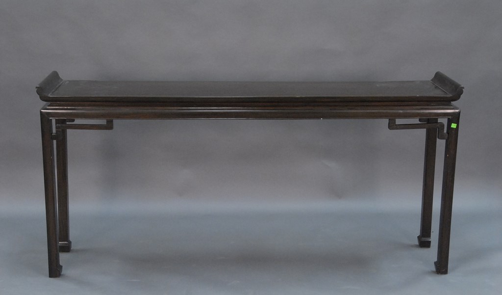 Three piece lot: Chinese alter style table lg. 70 in. and two mahogany one door cabinets.
